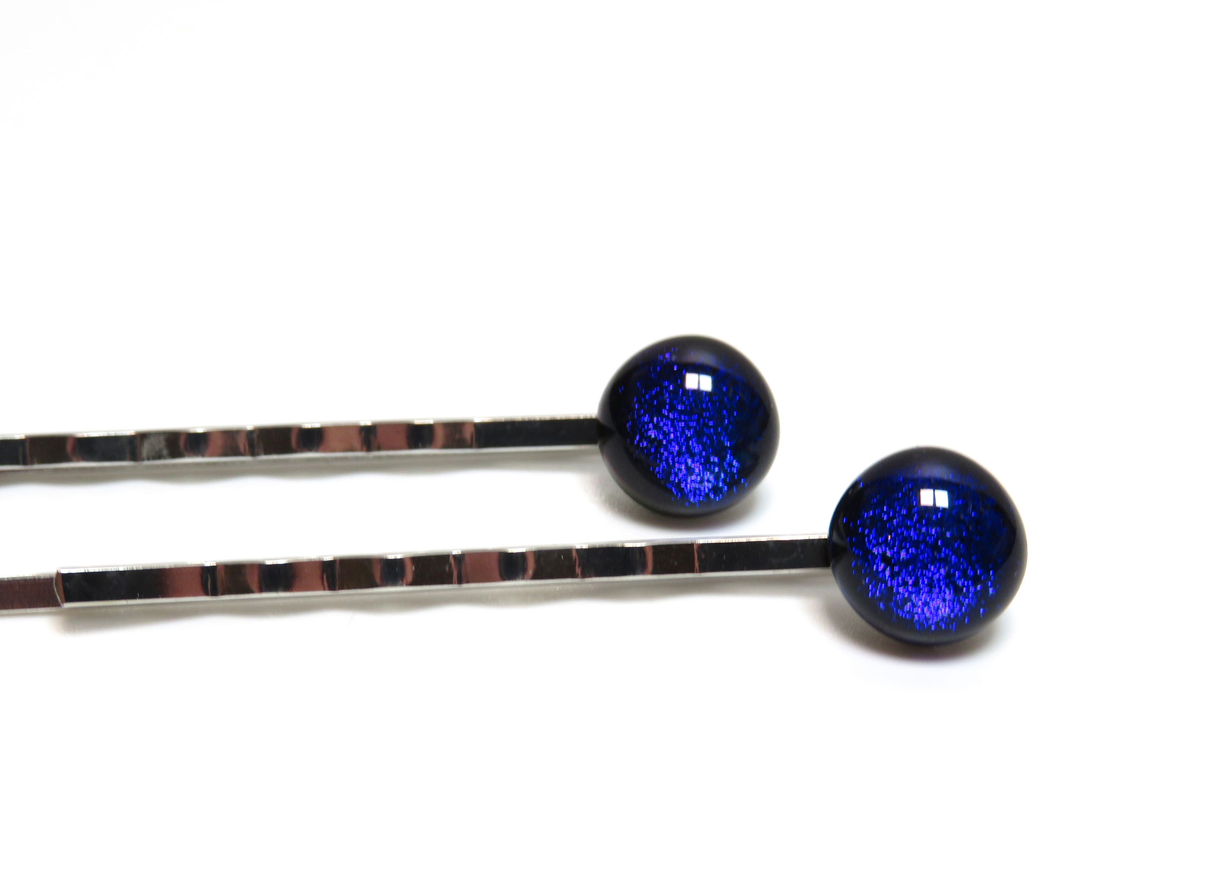 These handmade dichroic glass bobby pins are a unique and stylish way to add a touch of color and elegance to your hair. The bobby pins are made with dichroic glass, which is known for its shimmering, multi-colored appearance. They can be used to hold hair in place or as a decorative hair accessory.