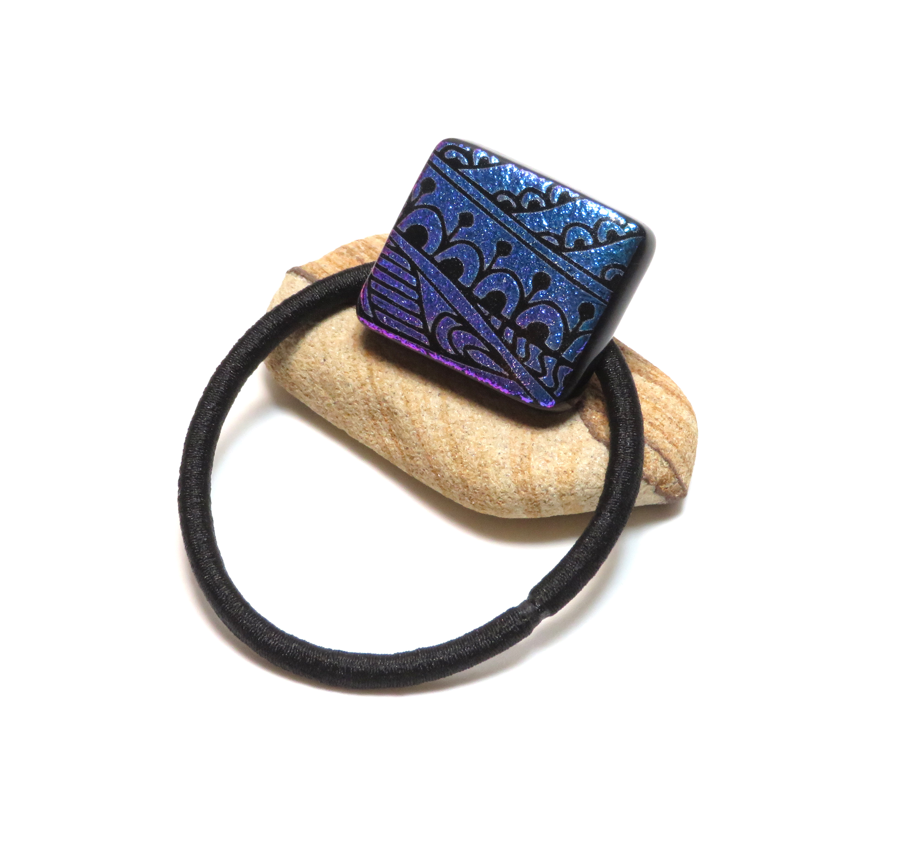 Handcrafted dichroic glass ponytail holder