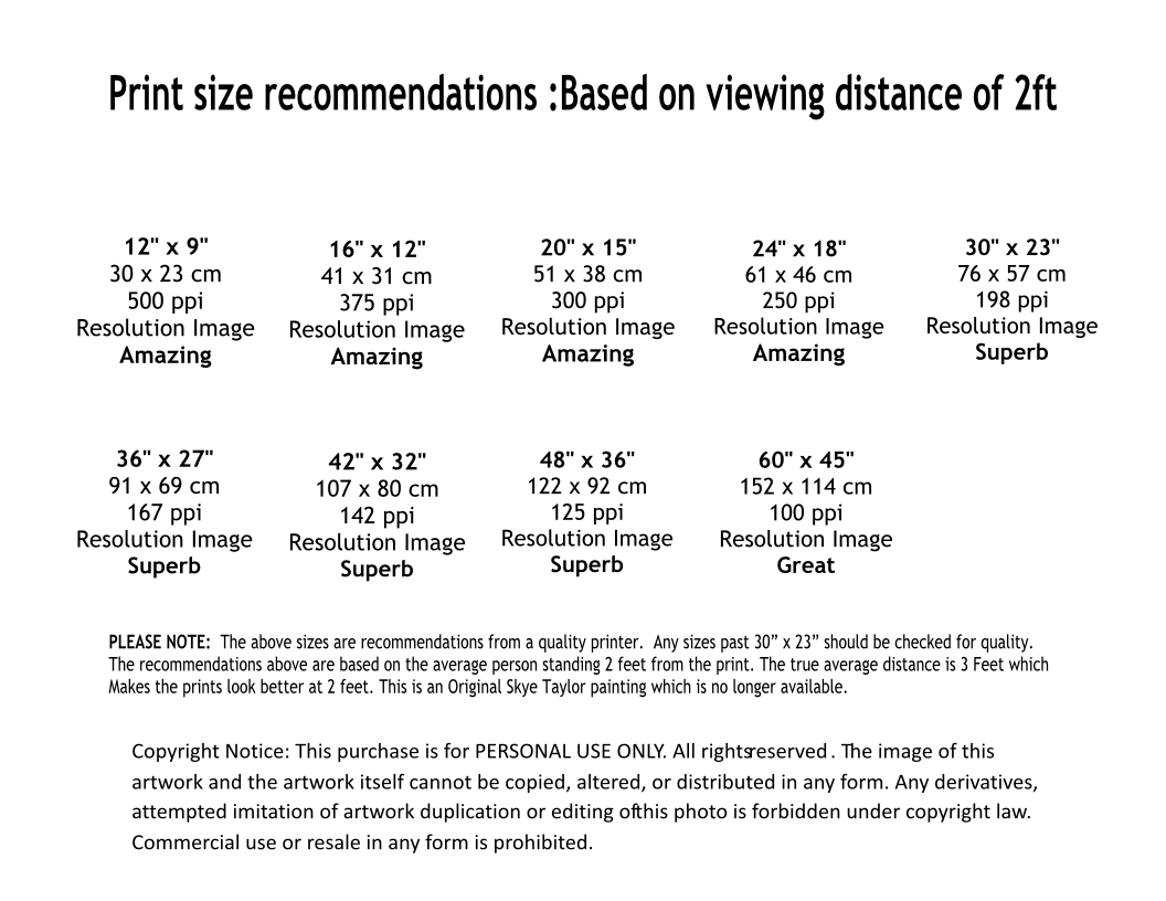 * Printable sizes up to 60" x 45" (See Size Chart in Photos )