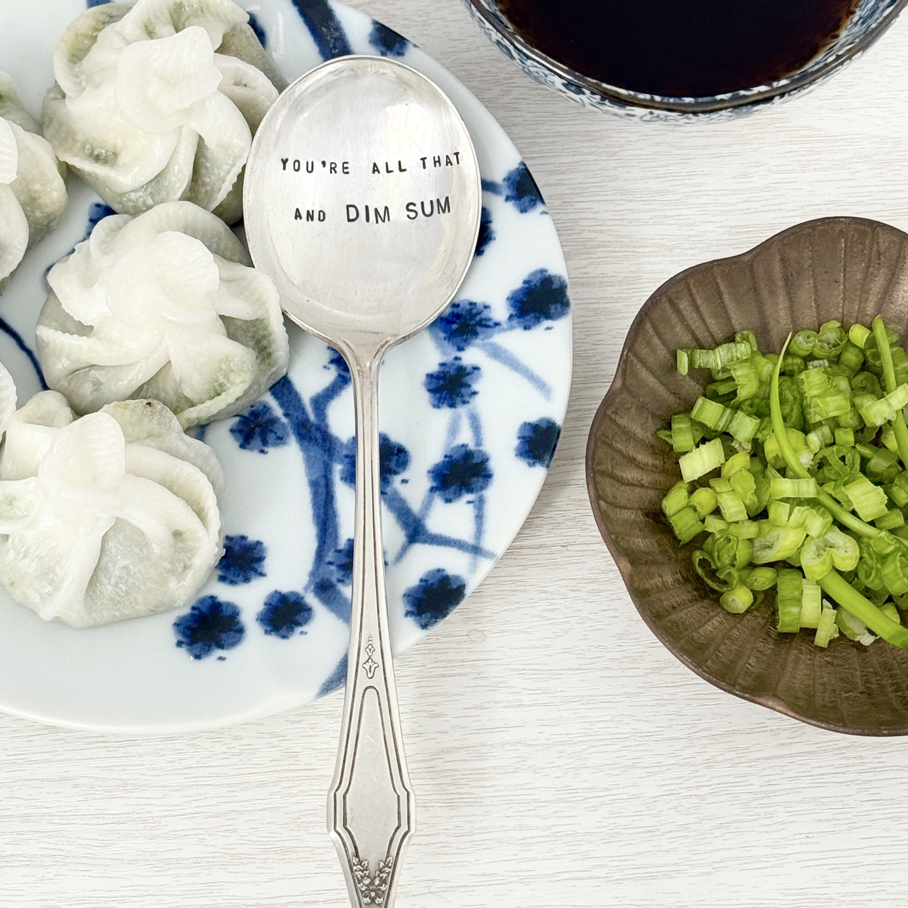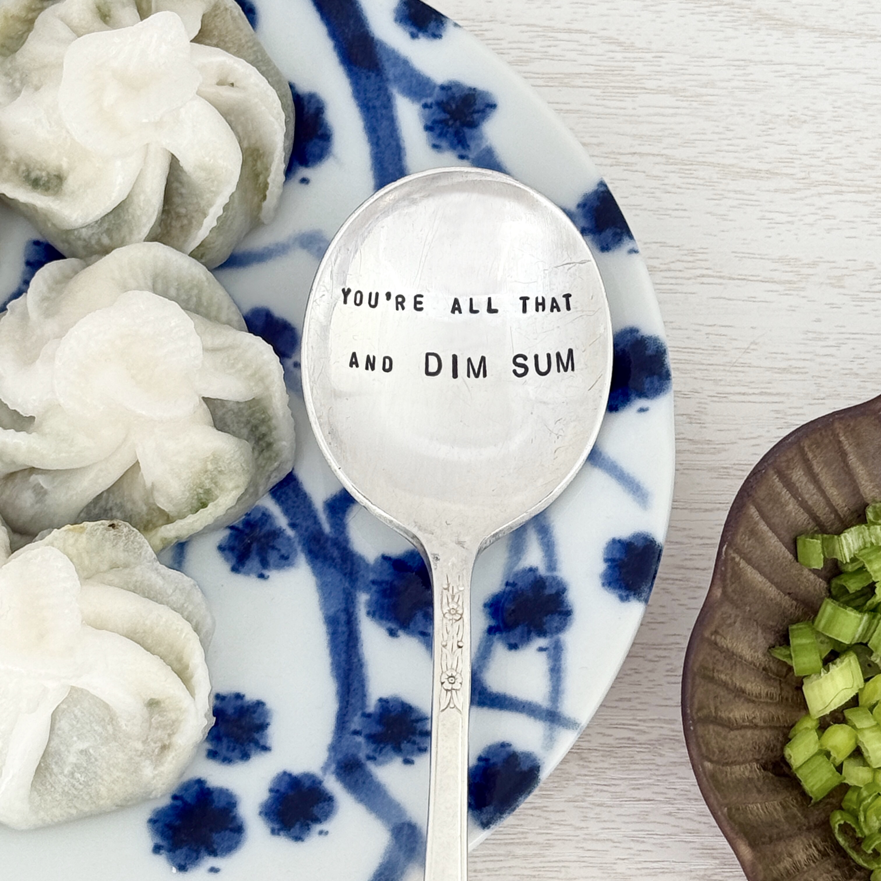 Hand stamped vintage spoon - “You’re All That and Dim Sum”. Celebration, congratulations, admiration! A keepsake that will keep them smiling