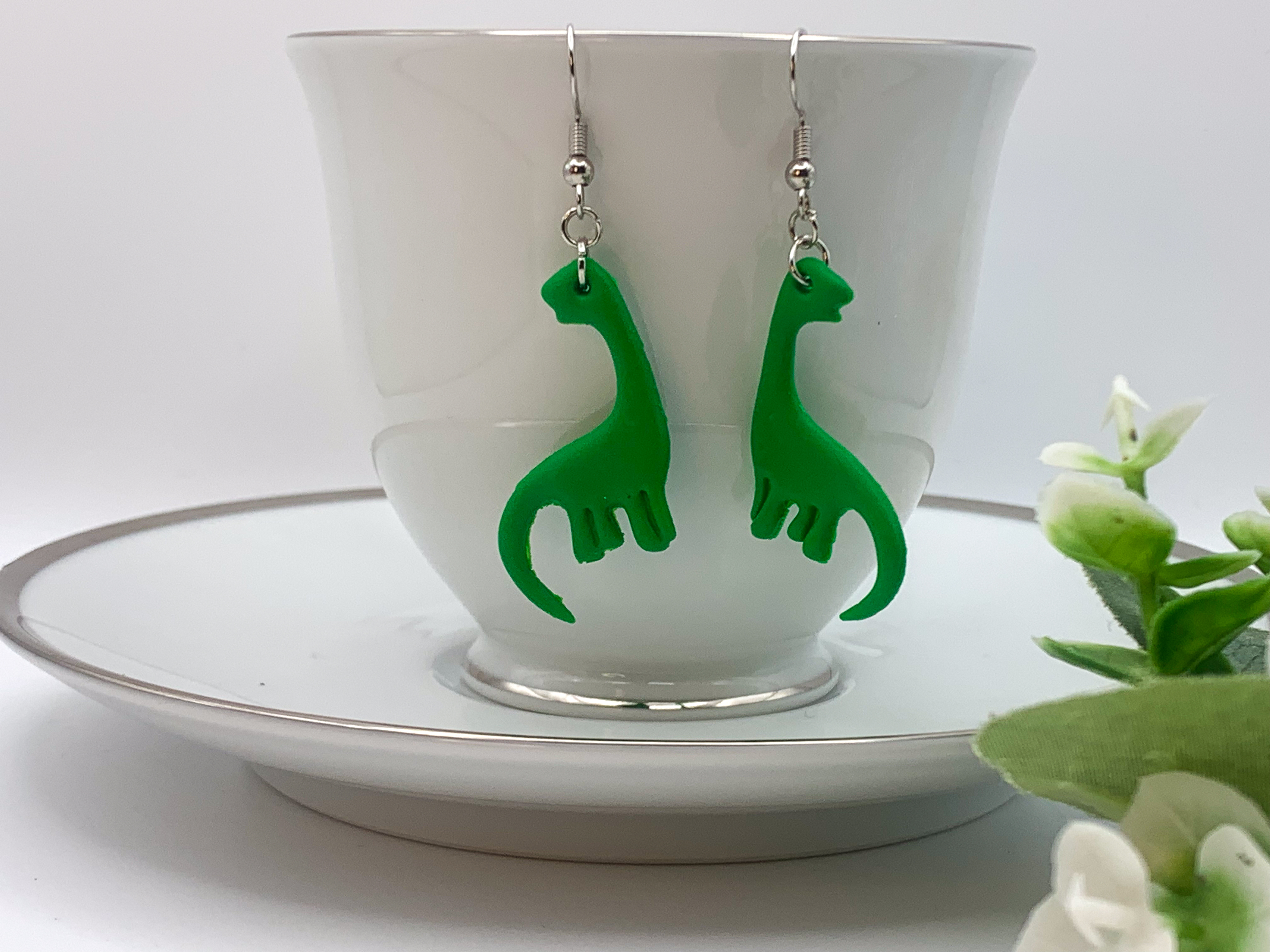 These bright green brontosaurus earrings are a fun way to show off your love for prehistoric pals! ?