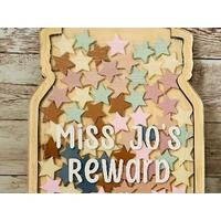 Jars are a creative way to encourage positive behavior with children. Good behavior incentive. These jars can serve as a chore chart, a reward chart, a potty-training chart, promote positivity and motivation. It is made of two layers of Basswood plywood that are 1/4" thick and one layer of clear acrylic that is also 1/4" thick. Vinyl is used for personalization.