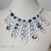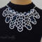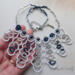 Using high quality Lizbeth cotton cordonnet thread (color "Arctic Evening"), I made the lace by hand using the technique of shuttle tatting. The lace motif measures about 5 and 1/2 inches across (14 cm), 2 and 1/2 inches (6 cm) high, and the total necklace length is adjustable from 16 inches (41 cm) to 18 inches (46 cm) with a lobster style clasp.