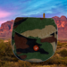 This is an approximately 8 inch x 8 inch belt pouch with a 1.5 inch gusset. It is small, but roomy enough to carry your essentials. The fabric exterior is a polyester waterproofed canvas. The fabric is distressed in appearance, so the dye is uneven in some places, but the fabric itself is in new condition. The interior is cotton twill. The pouch features belt loops on the back for attaching to a belt and small loops on the top to attach a chain and wear like a sporran (or very small shoulder bag). The bag closes with an elastic loop and leather button. Belt and chain not included.