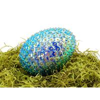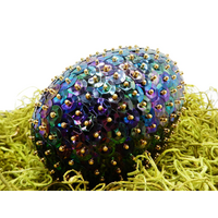 Each of my ornaments and decorative eggs are meticulously hand crafted - one tiny bead at a time - by me. There isn't a factory involved. Is it time-consuming, yes. But I really enjoy the tactile process of creating each ornament. So whether I'm using carefully curated ribbons & adorable toppers, or individually placed Czech glass beads with color coordinated sequins on a satin-wrapped foam shape, each is truly unique. My decorative eggs are versatile, either displayed in groupings in a bowl as though a very glam Easter bunny left them for you, or as an ornament for an Easter Tree. These sparkling beauties could also double as a Christmas ornament sparkling from the lights of your tree.
