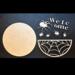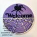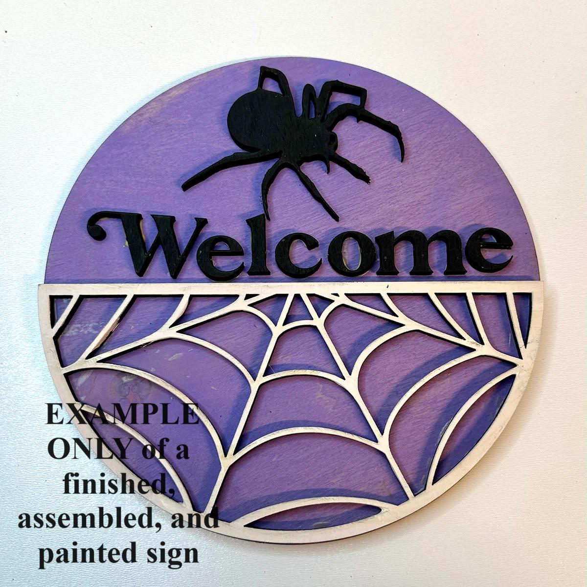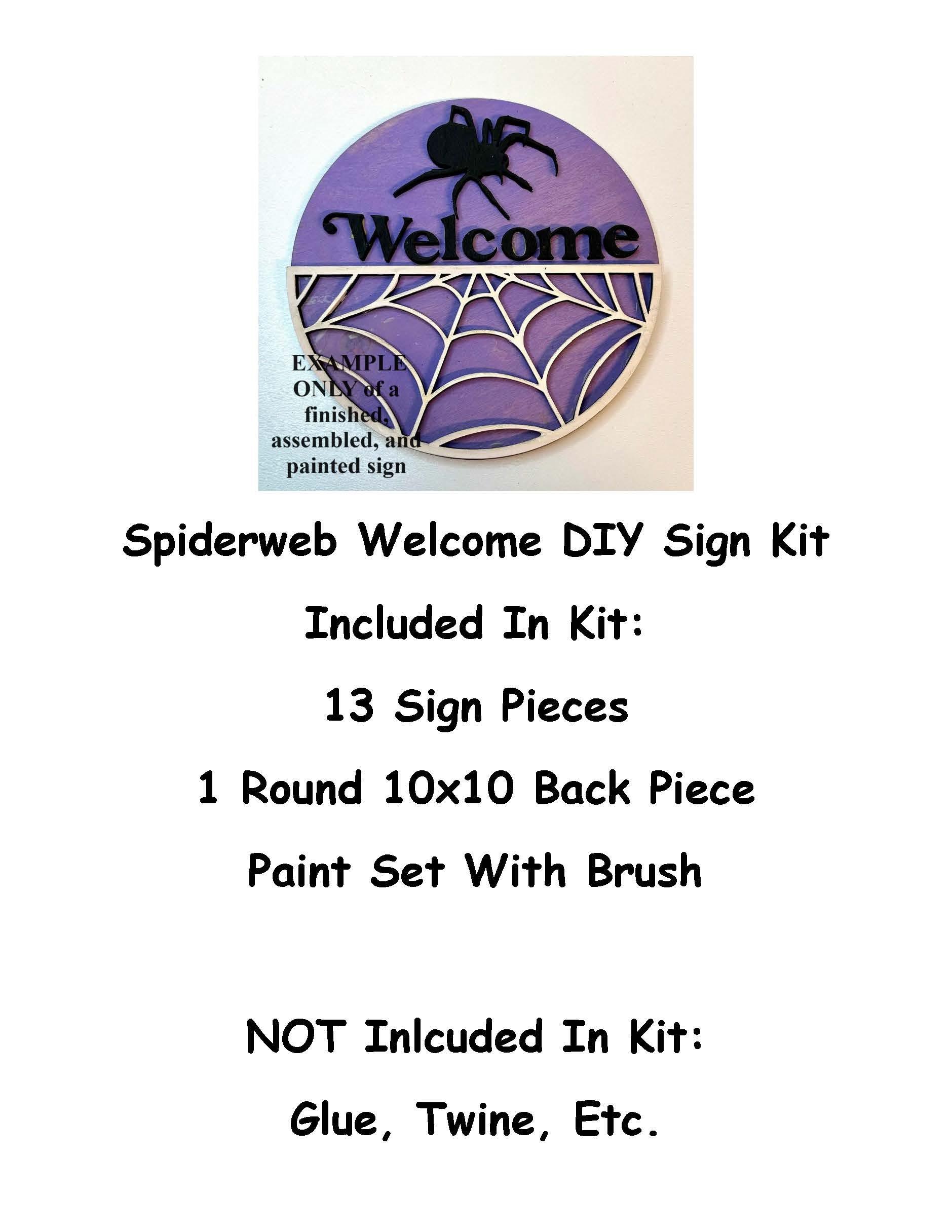 This is a spiderweb welcome DIY (Do It Yourself) wood sign craft paint kit. The pieces are laser cut on 1/4" inch thick draftboard. It does not stand up on its own. It does NOT have a hole for hanging. Glue NOT included. This is NOT a finished and completed sign. You assemble it, glue it together, and paint it yourself.