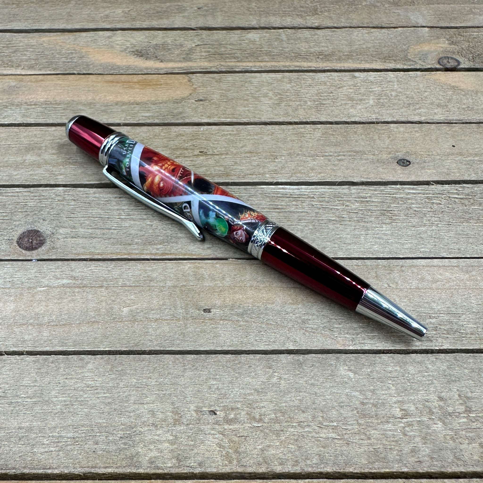 Bring your love of adventure to the tabletop — and your desk. This handcrafted Sierra-style ballpoint pen features authentic DnD postage stamps, carefully cast in crystal-clear resin for a stunning and durable finish. The iconic D&D imagery is permanently preserved within the pen body, making each piece a unique collectible that celebrates imagination and storytelling.