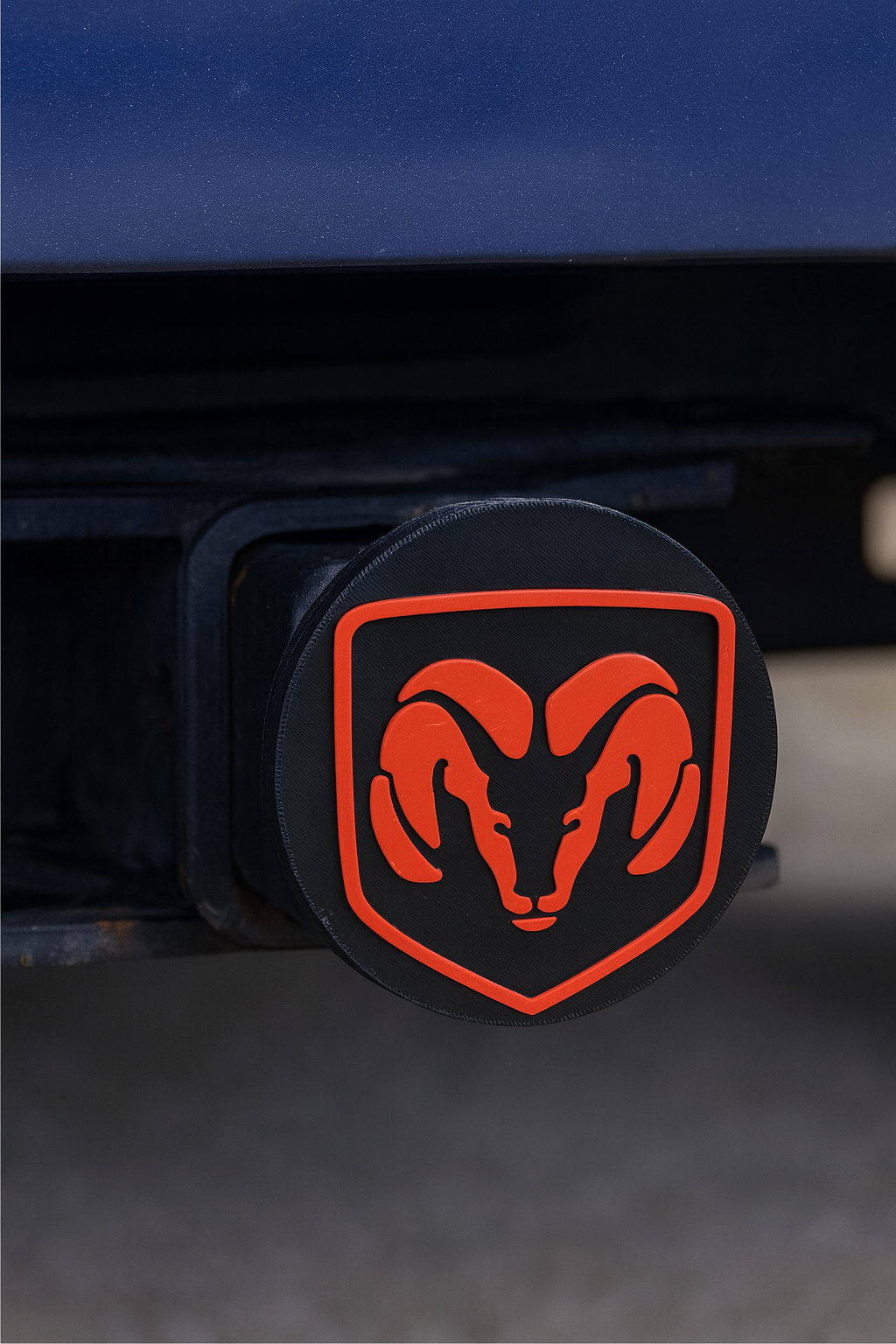 Title: Dodge Ram Truck Trailer Hitch Receiver Cover Plug Cap 2" Receiver Push Slip On - Red Logo