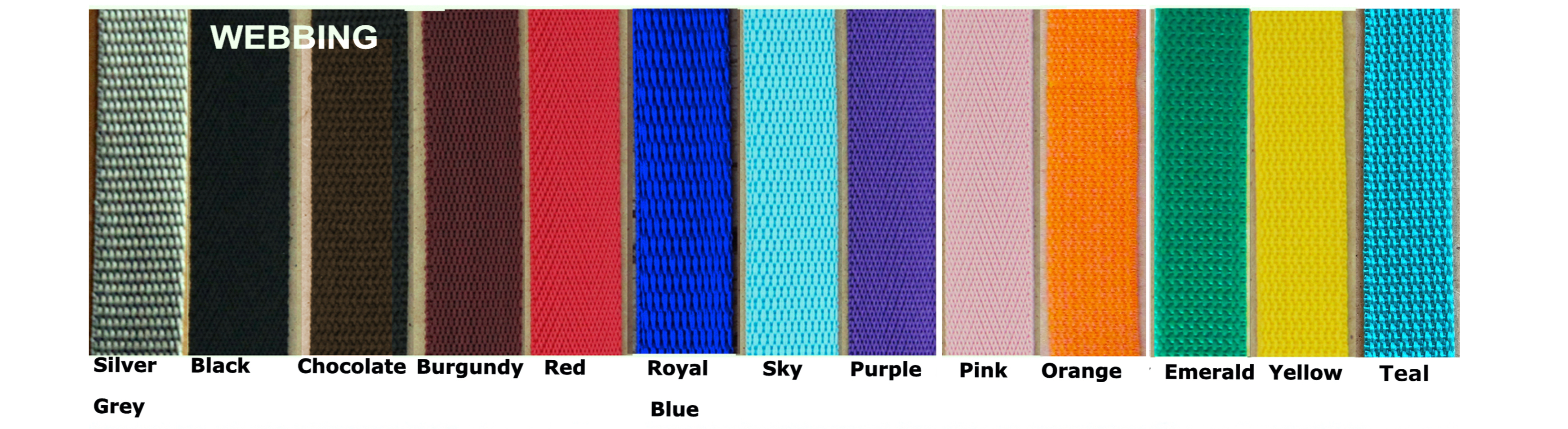 For more info on sizes, comparison of widths and webbing/padding colours & patterns, see this page of my website: http://www.paddedcollars.com/c...I can sew in slide on ID tags when I make collars, and use plastic D rings instead of metal, on request.