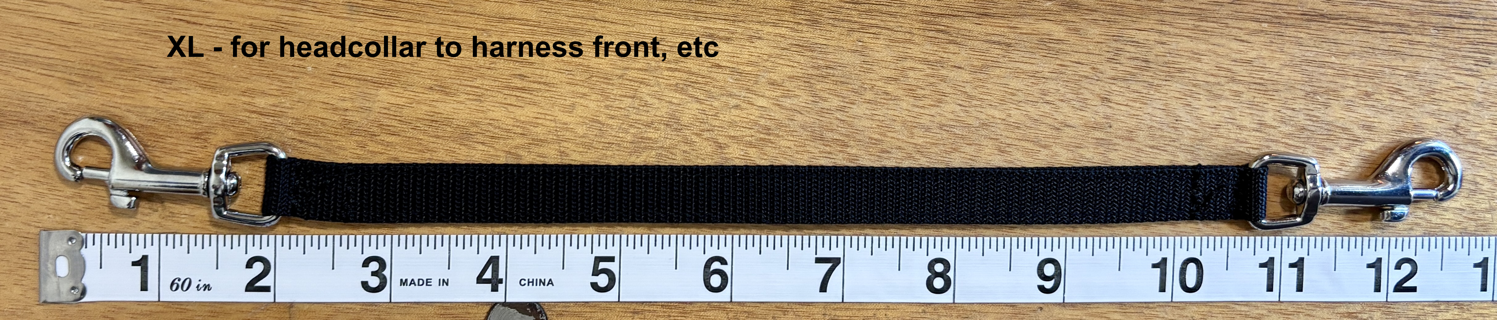 X LONG: made from 1/2" (15mm) width webbing. Measures approx. 12.5 inches including the clips.
