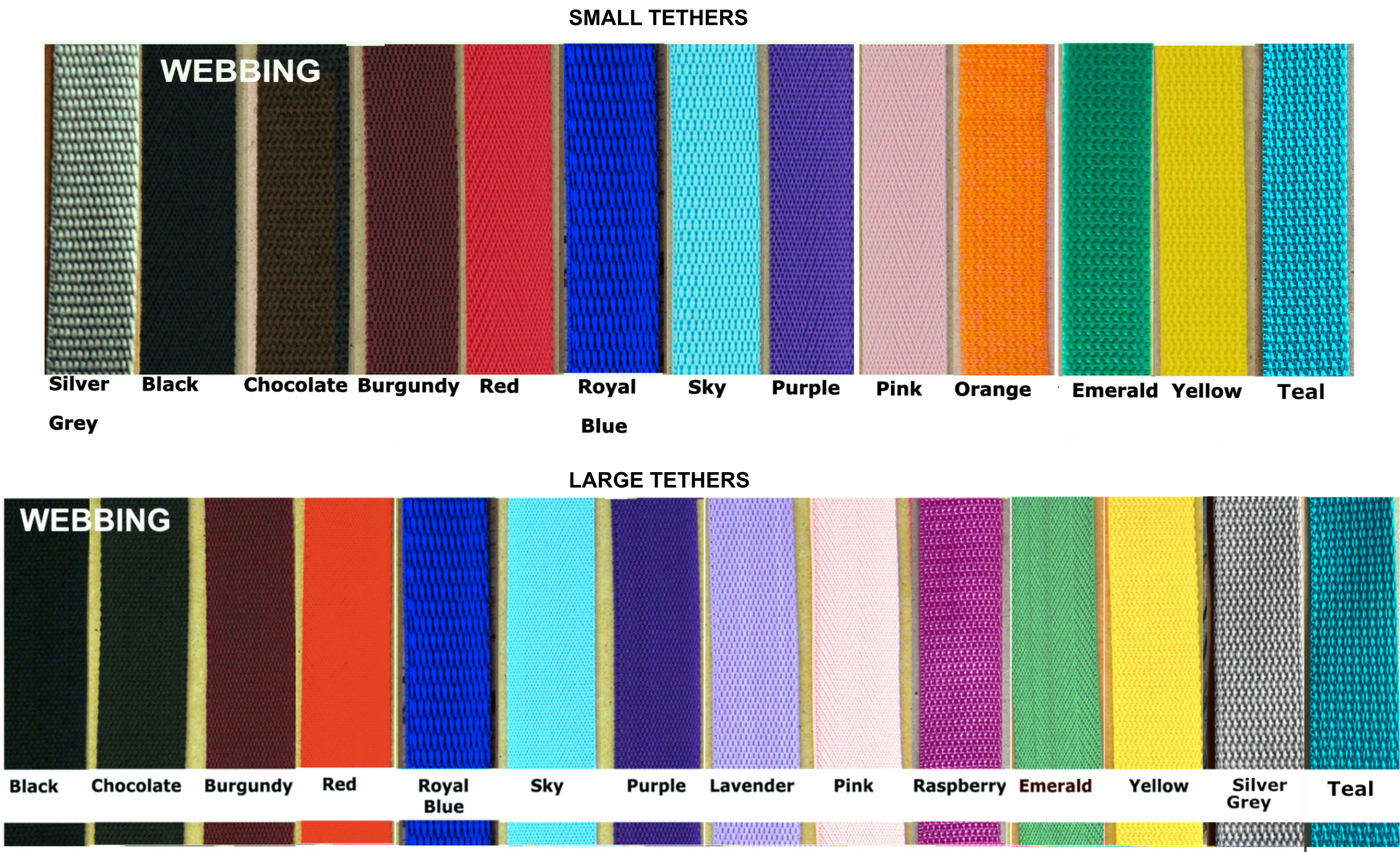 LARGE - made from 1" (25mm) width webbing, with a swivel trigger clip. Adjusts from 23" up to 40 inches
