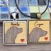 I design the layout with dog breed, name and heart. The background is laser engraved maple wood and the dog silhouette is walnut. Then I hand-paint each heart, glue into pendant and seal.