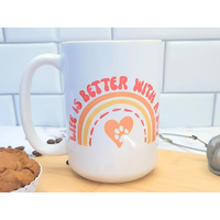 Each mug is like a blank canvas that I add my design to by hand through sublimation. A unique process that includes special inks, and the need for a heat press to transfer those inks to the ceramic base. The design becomes a part of the mug, and won't peel, fade or crack over time!