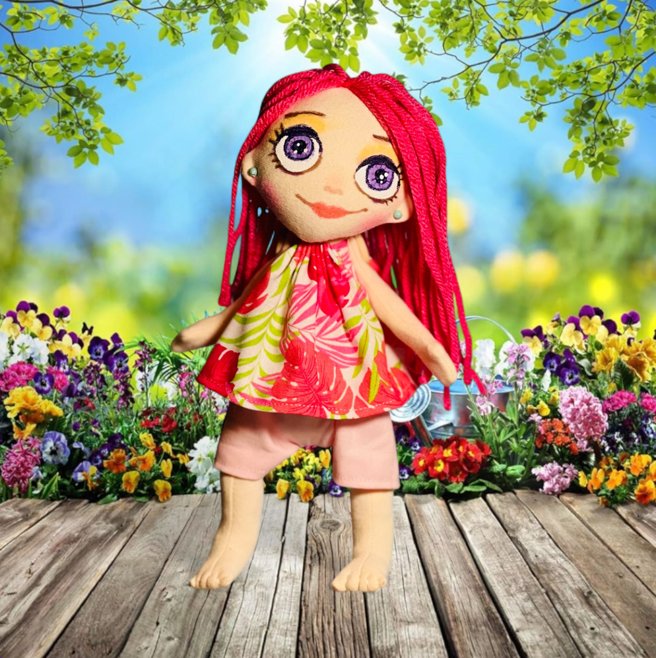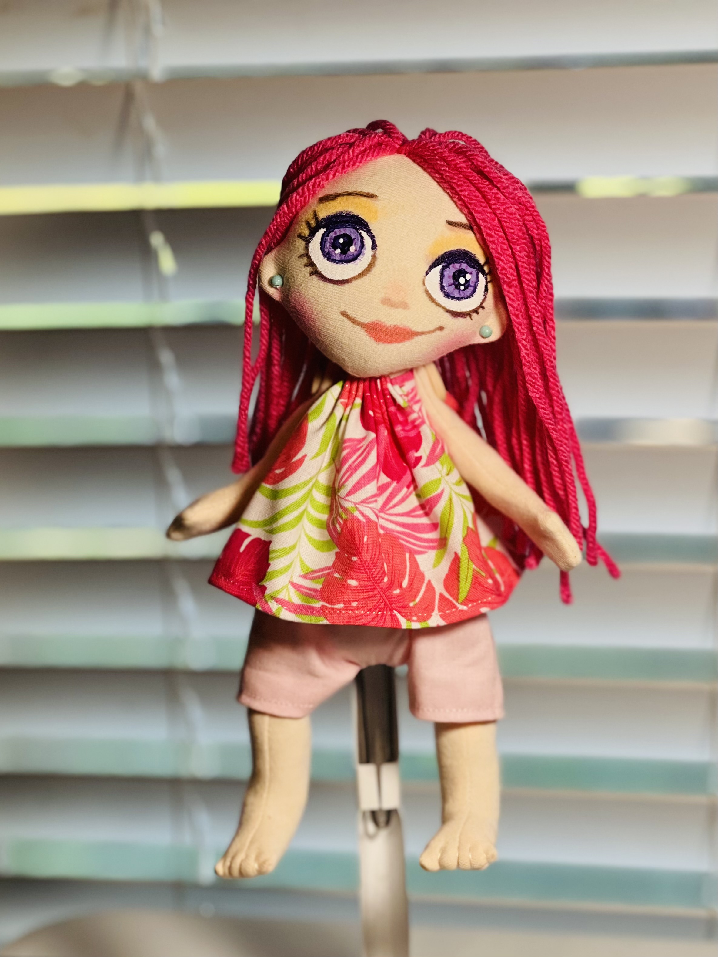 Keca 12” doll’s bodies are made it with 100% cotton ( knit Waldorf Skin fabric) and are fill with hypoallergenic premium polyester, hand panted face , and the hair is sewn to head, arms and leg articulate, each doll is uniquely crafted by Carmel.