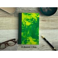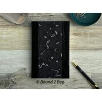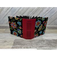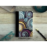 Artistic Cover: The cover is made from handmade book cloth crafted from quilting fabric, showcasing an artsy painterly swirl design on a white background, adding a unique and creative touch.