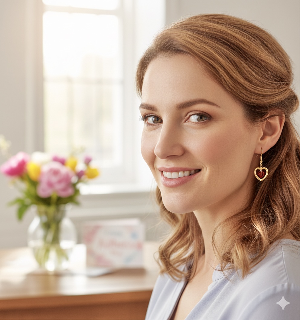 A small red heart bead, nestled in a slightly larger gold metal heart, makes this a wonderful gift for Valentine’s Day, Mother’s Day, a Birthday, and Anniversary