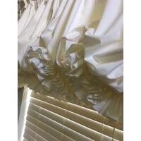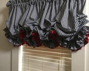 Made of permanent press unbleached muslin, this lined balloon curtain has 2 very full ruffles. This one is 30 inches long but can be made whatever length you need. It will fit a standard window if up to 45 inches wide.
