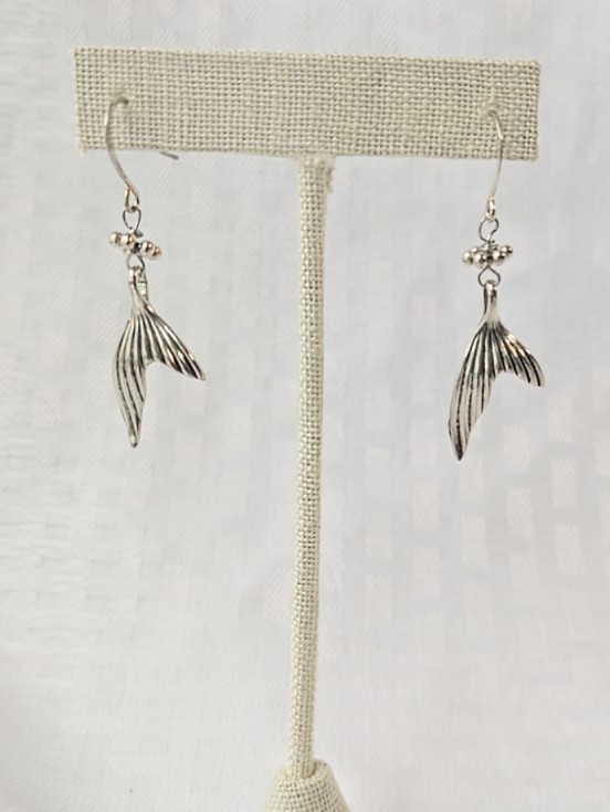 The fishtail earrings are finished with a metal bead. The length from the bottom of the ear wire is approximately 1". Both pairs are very lightweight.