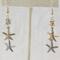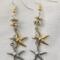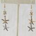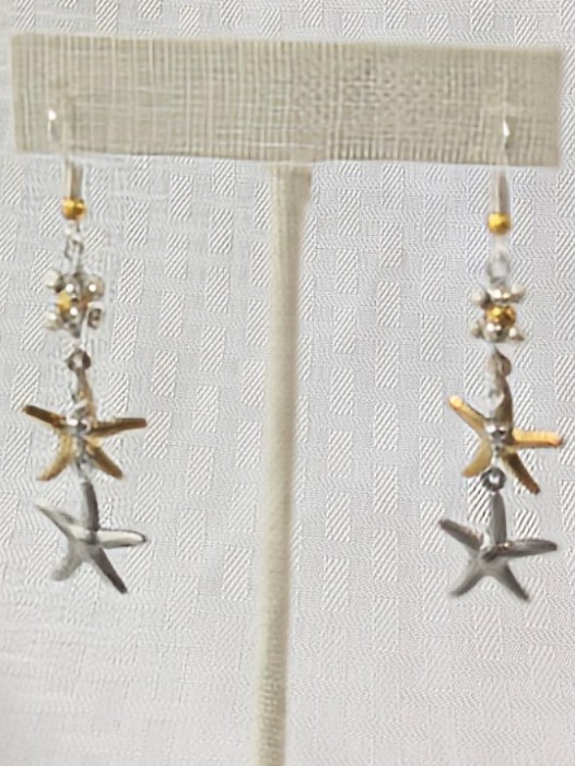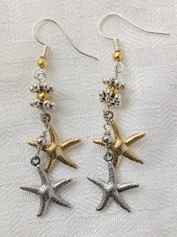 Cute little gold and silver colored starfish dangle from metal beads. The length from the bottom of the ear wire to the bottom of the starfish is approximately 1 and 1/2" in length.