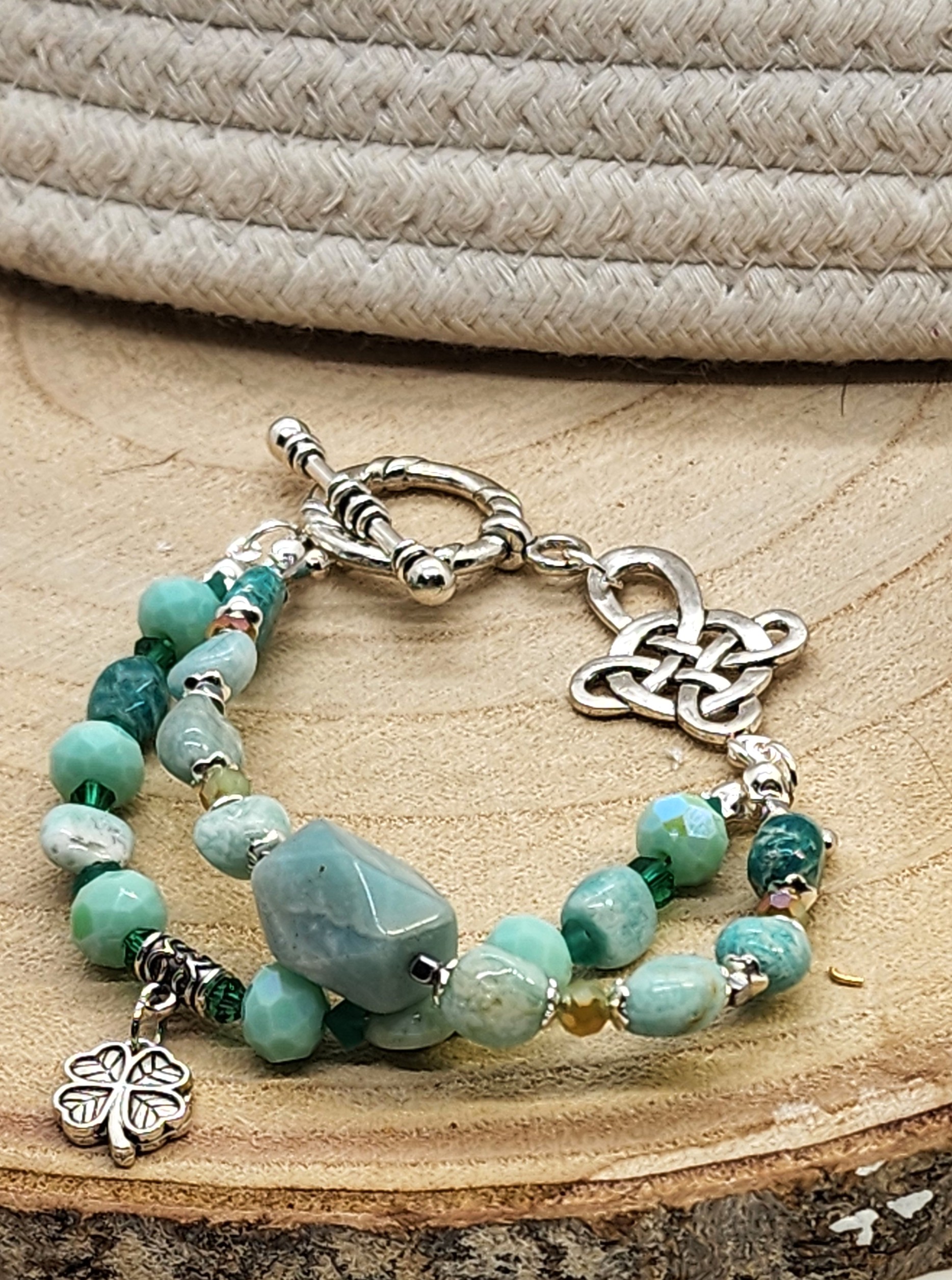 Whether you’re dressing up for St. Patrick’s Day, gifting a nature lover, or adding a serene pop of color to your everyday style, this bracelet brings a gentle, earthy energy to any outfit. Each piece is lovingly handcrafted in Missouri, making it truly one‑of‑a‑kind.