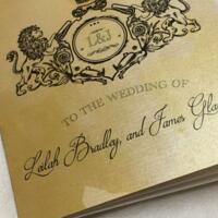 A modern take on a classic style- This double thick double sided invitation is sure to wow your guests, and set the tone for your Gatsby style wedding. The invitation is mounted and raised on top of a double thick card that is printed on both sides. The old Hollywood glamour runs throughout this chic and gorgeous invitation making it perfect for your unique wedding.