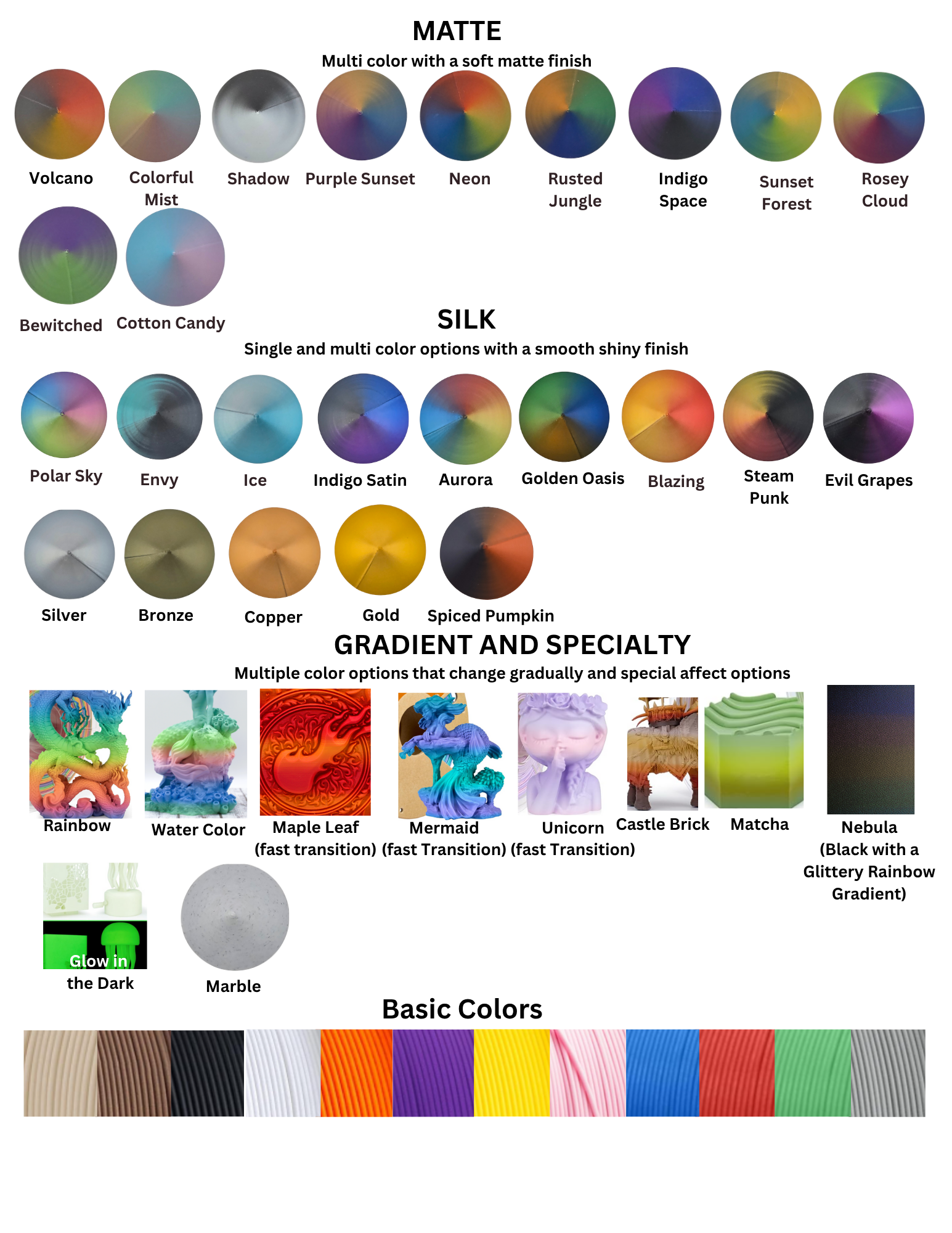 Multi color options will show a different color at different angles. Due to the orientation of how some items need to print, some color patterns may not exactly align. We do our best to avoid this, however sometimes we can’t.