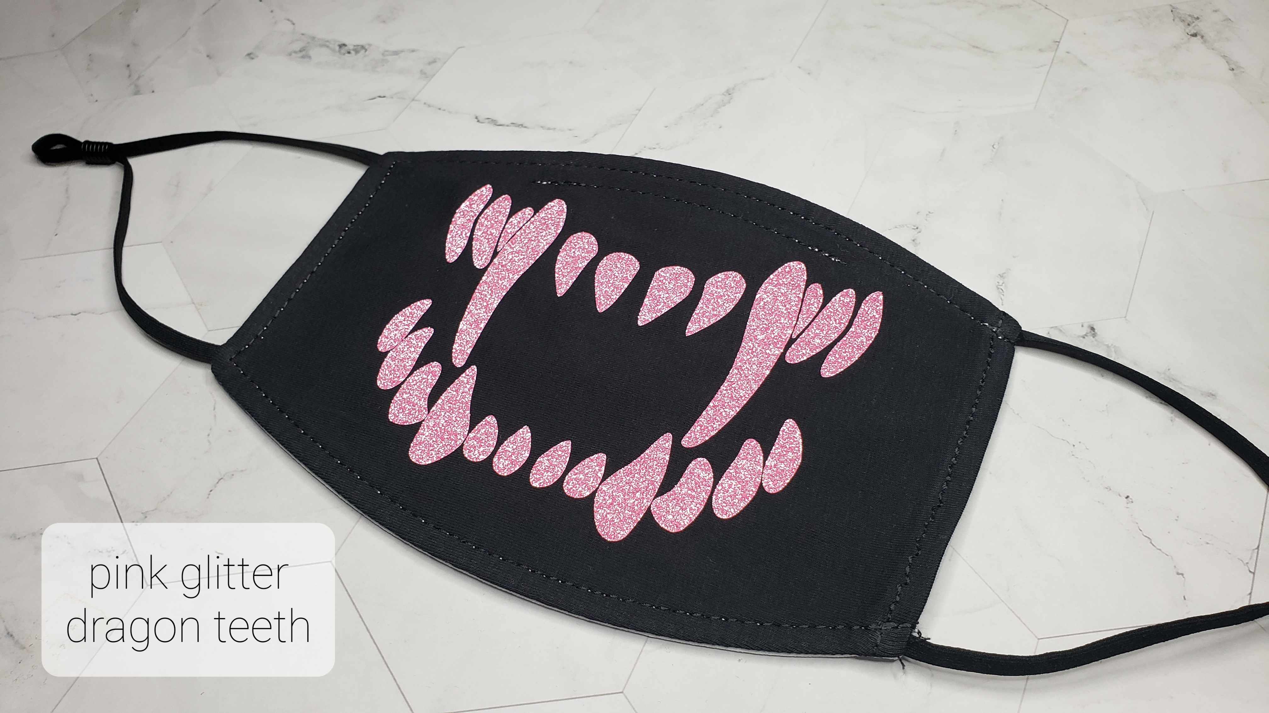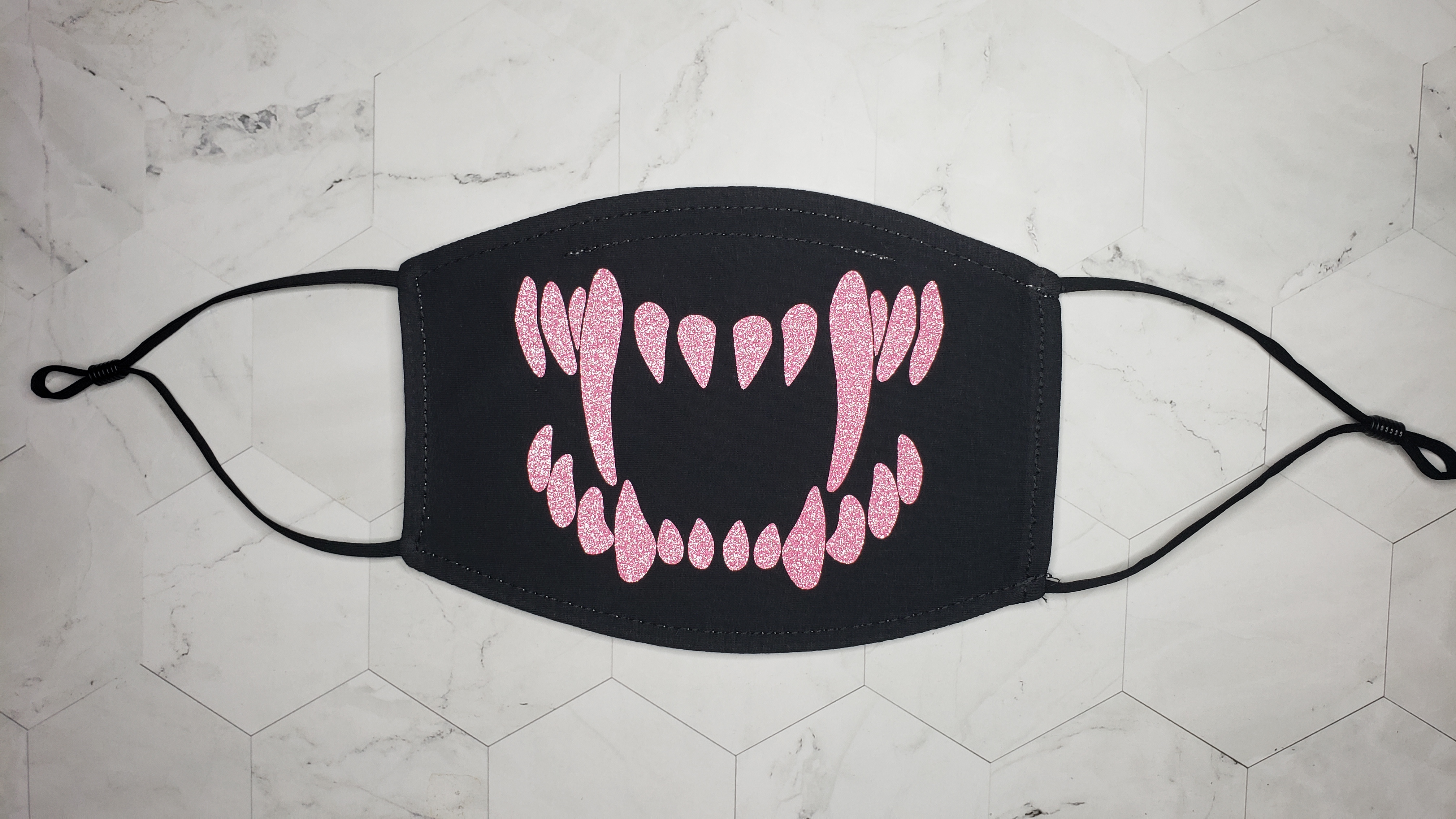 Dragon Teeth Mouth Mask. Design printed in the color of your choice and mask of your choice.