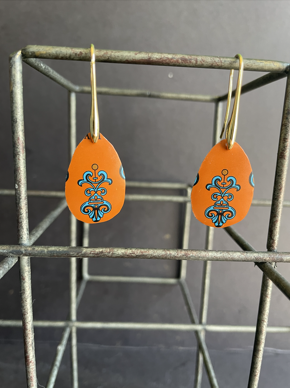 • Care Instructions: As with any jewelry, the easier you treat it, the longer it will last. The double-sided pendants are not water proof. The tin earrings are water proof, although some of the older tins may rust as they have a higher iron content (I think this patina only adds to their charm).