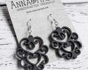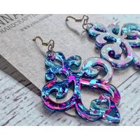 These stylish earrings are made with lightweight laser cut acrylic in clear with gold flecks throughout. The length of the acrylic piece is 2 inches. Due to the unique nature of this acrylic each pair will not be the same or have the same gold fleck pattern.