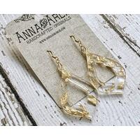 These stylish earrings are made with lightweight laser cut acrylic in clear with silver flecks throughout. The length of the acrylic piece is 2 inches. Due to the unique nature of this acrylic each pair will not be the same or have the same silver fleck pattern. The ear wires are hypoallergenic & silver plated.