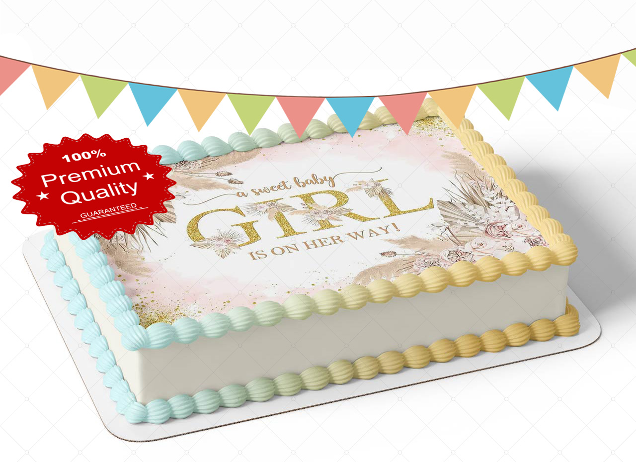 Dry Grass Floral Girl Baby Shower Edible Image Themed Edible Birthday Party Cake Topper Sheet Edible Sticker Decal