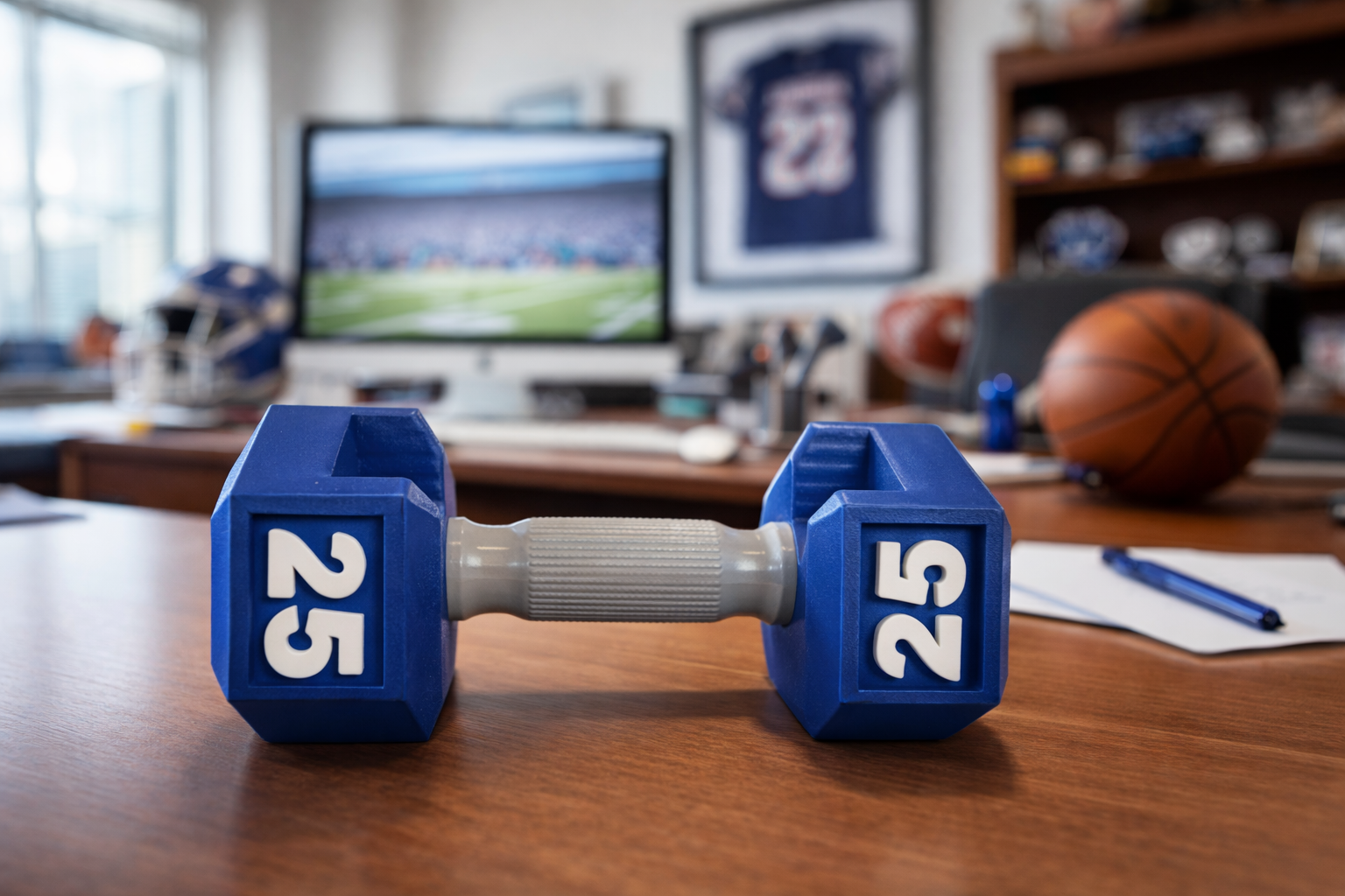 Description: 1 Blue Barbell Business Card Holder - Fits up to 25 Cards - Manufactured through Fused Filament Fabrication (3D Print)
