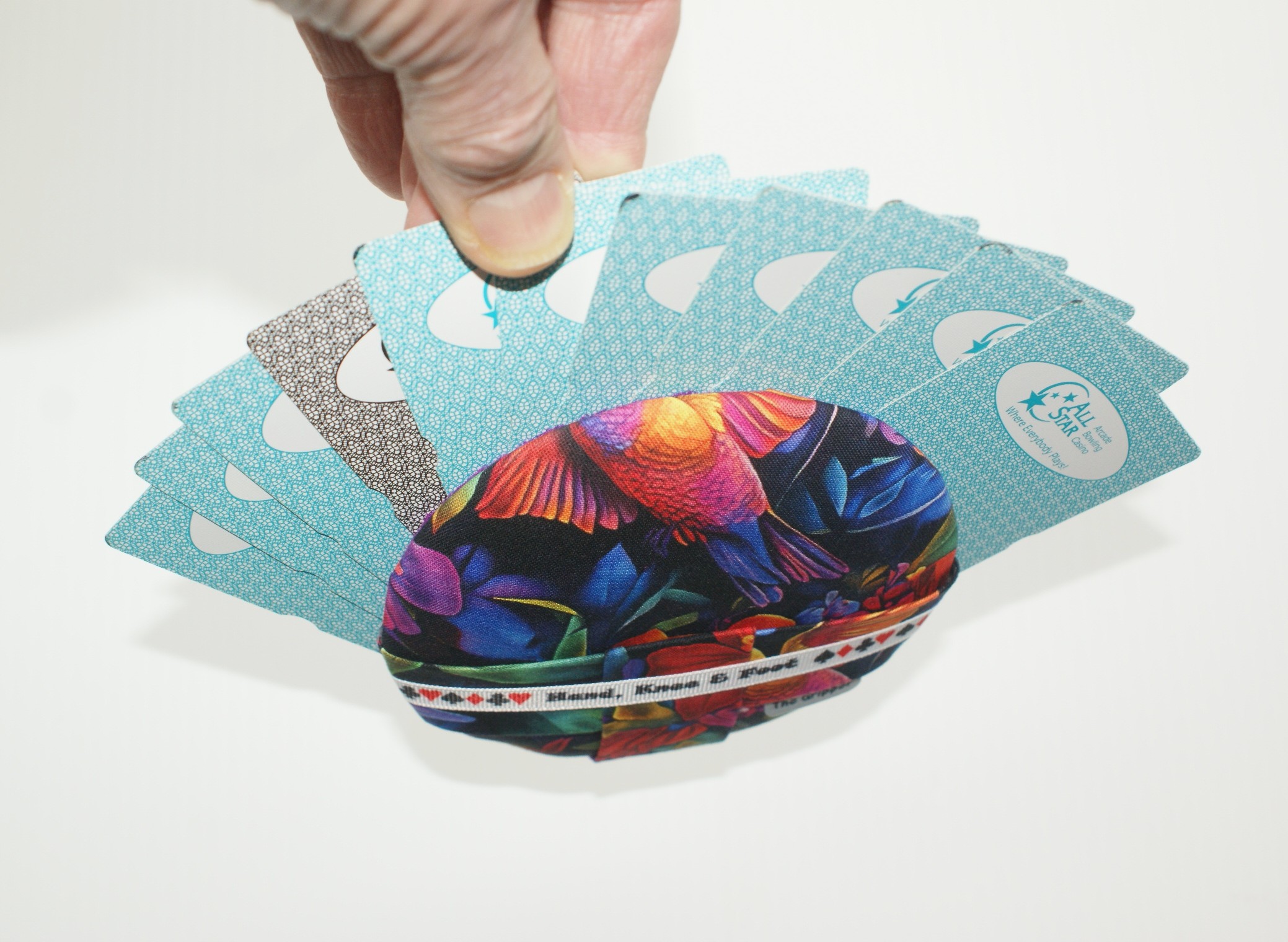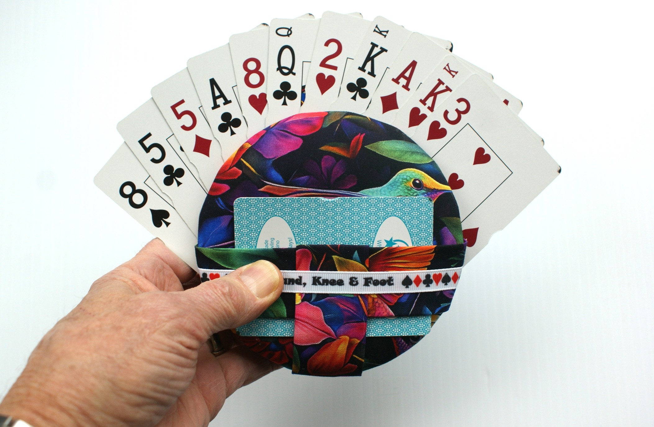 But while we were there I discovered that many retirees loved to play card games. However, I also learned that there were many who had problems holding the cards due to hand issues, way too many cards, etc. So I decided to set out to find a solution. After many trials and errors, I came up with a prototype which, after consulting with my wife (who has done quite a bit of sewing and quilting) I improved upon and set out to test my "invention" at craft fairs. To my surprise, they went over so well that I actually sold out at my first one! I quickly made more that evening and participated in another craft fair where I just about sold out again.