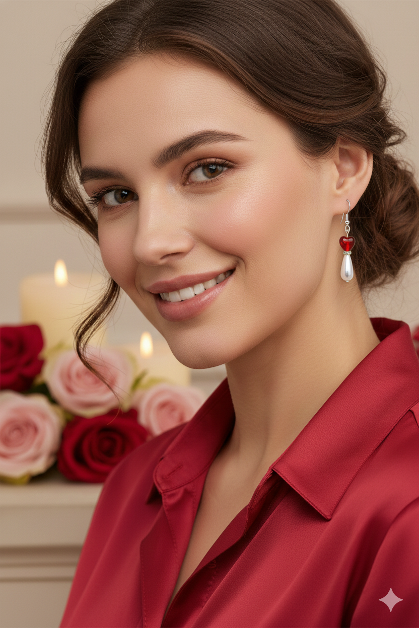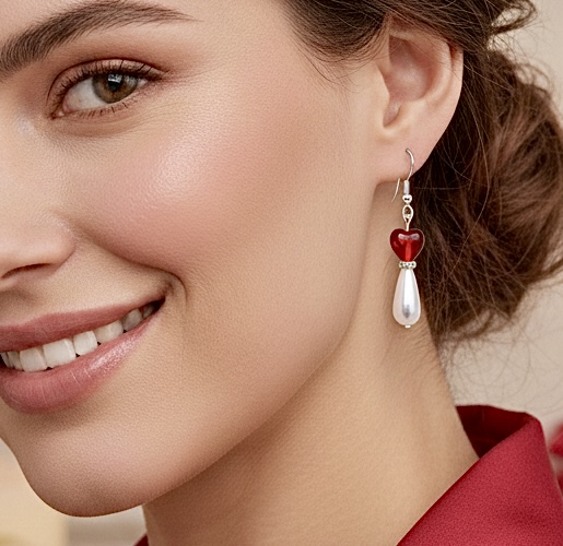These small red heart earrings can be bought separately, or get all 3 pairs as a set. The red hearts are combined with small white pearl teardrop, 6mm clear round crackle bead, or clear pretty butterfly. Together or separately, they make a simple, loving gift for Valentine’s Day, Mother’s Day, Birthday, Anniversary…or just to say “I love you!”