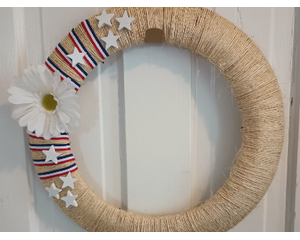 Handmade Cotton Wrapped Faux Floral Summer Wreath 14" or 18"