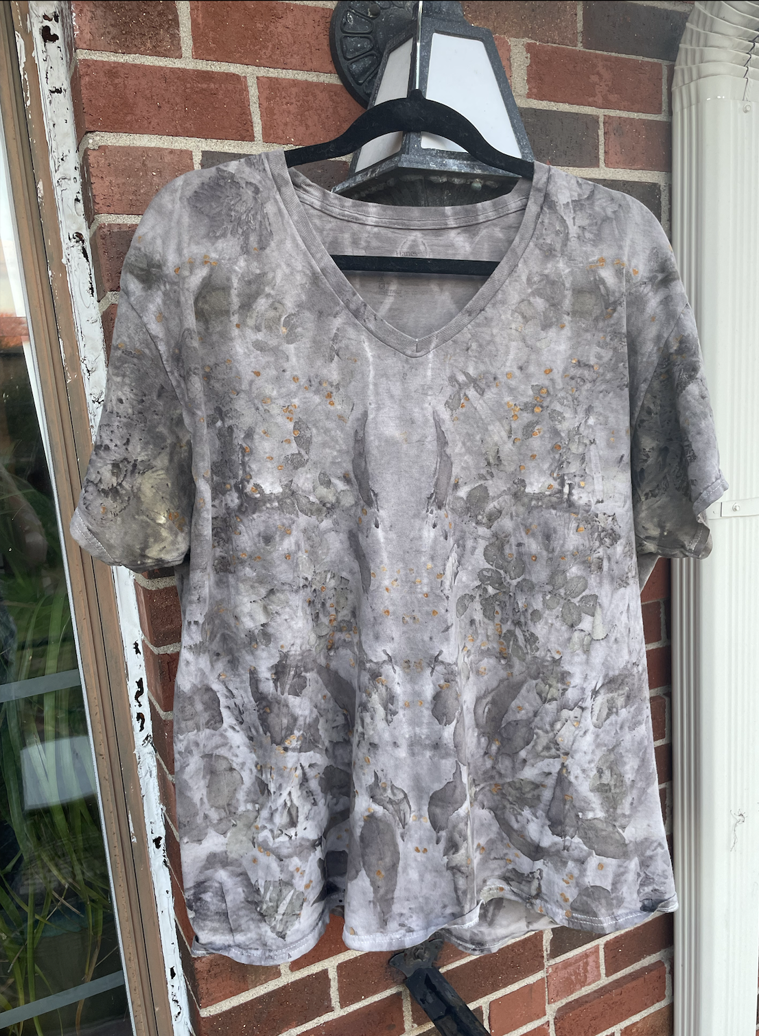 Eco-printing is a process of pressing the entire dye plant against the fabric and transferring the color while the plant stays flat, without the use of chemical mordants.