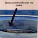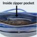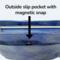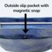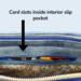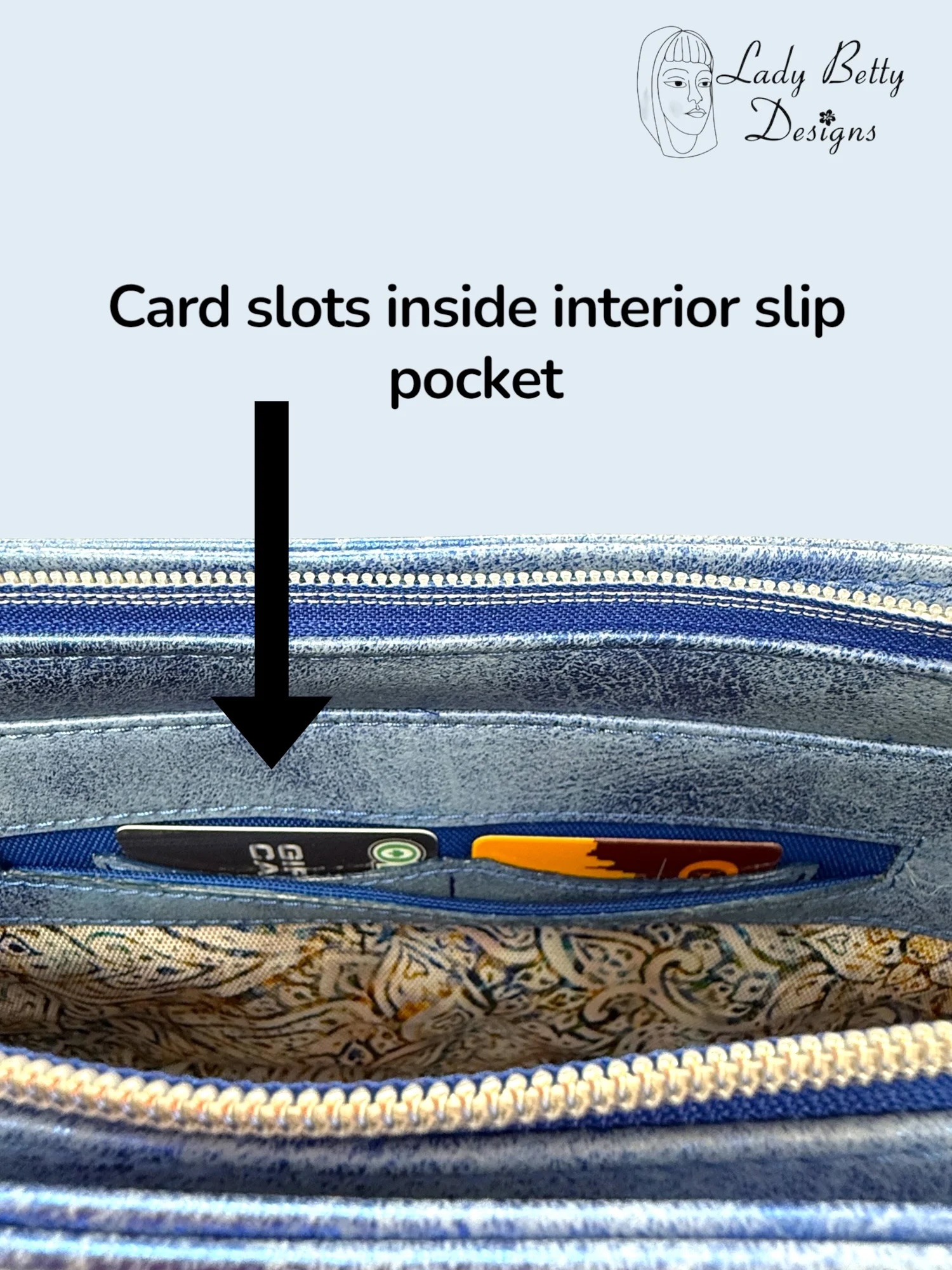 Inside, a neatly organized lining with one slip pocket (which includes credit card slots) and one zipper pocket.