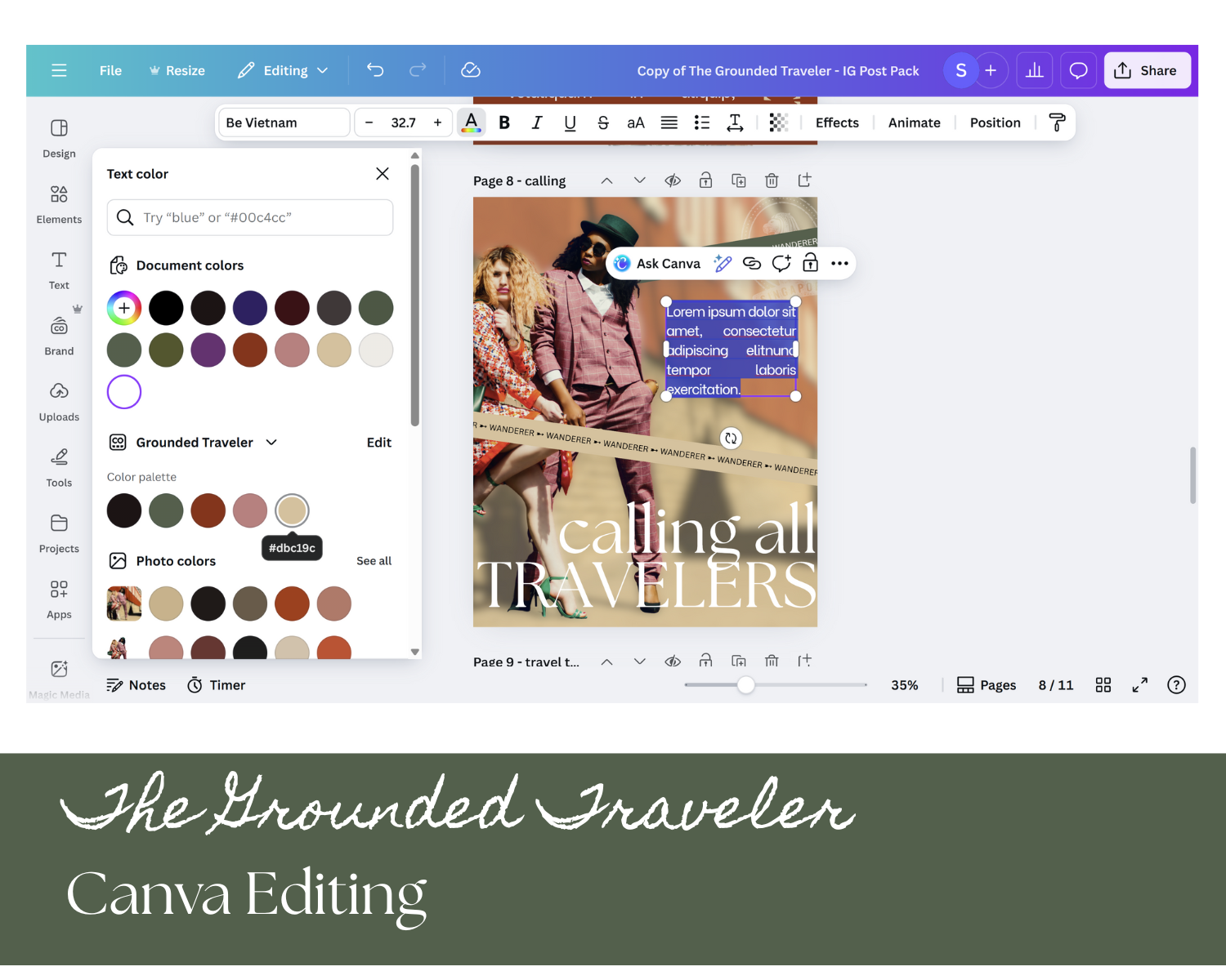 Consistent brand theme - any future posts I add with the brand theme called The Grounded Traveler will match this same brand theme
