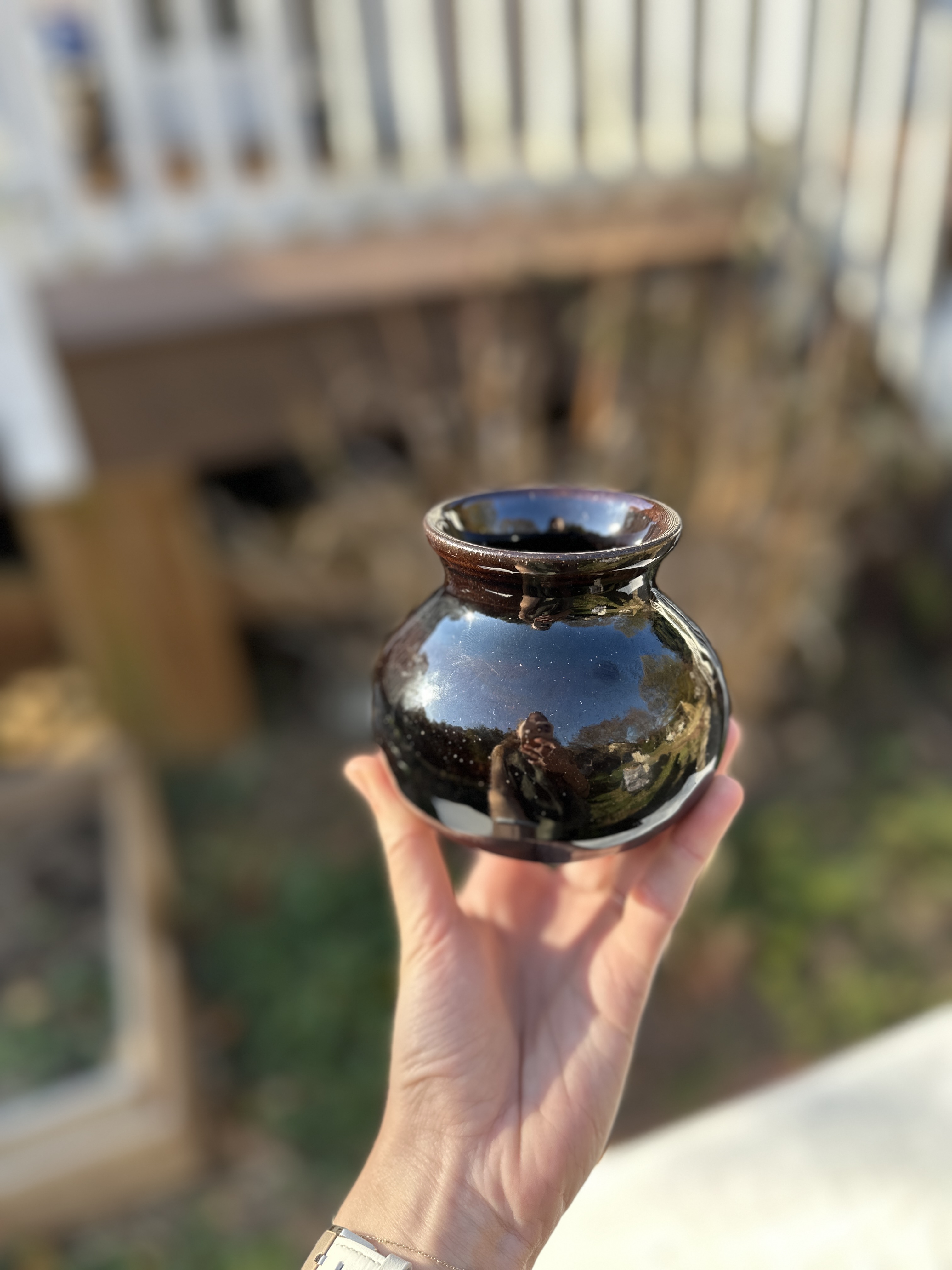 These are one of a kind bud vases, cups, and bowls that serve as beautiful decor and holders of meaningful items. I use mine for found treasures - bird feathers, flowers from my husband's garden, oils and tinctures made by my friends.