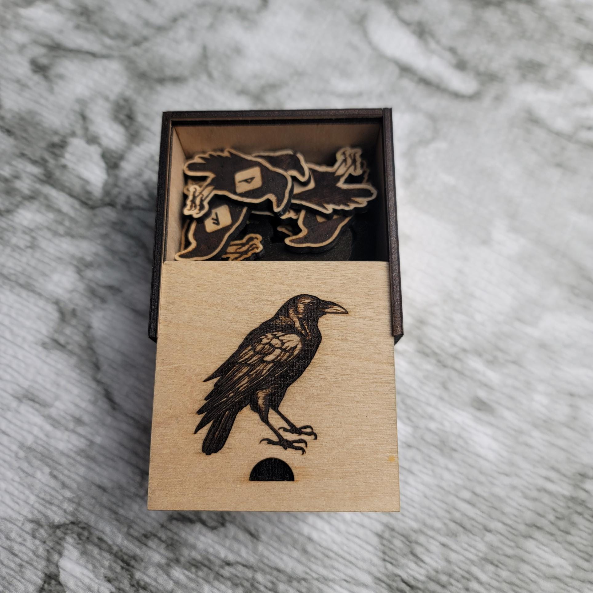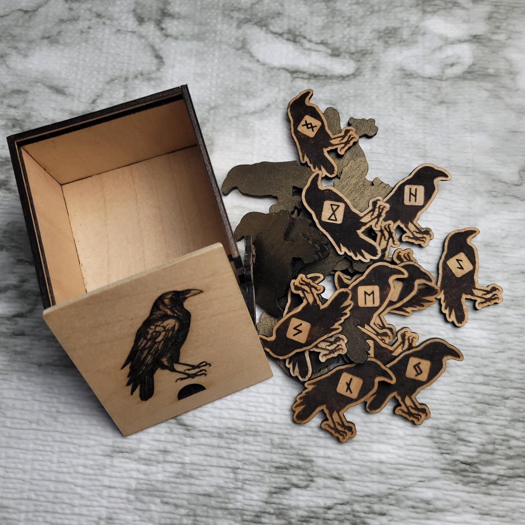 Handcrafted Elder Futhark Rune Set – Raven Shaped with Matching Box