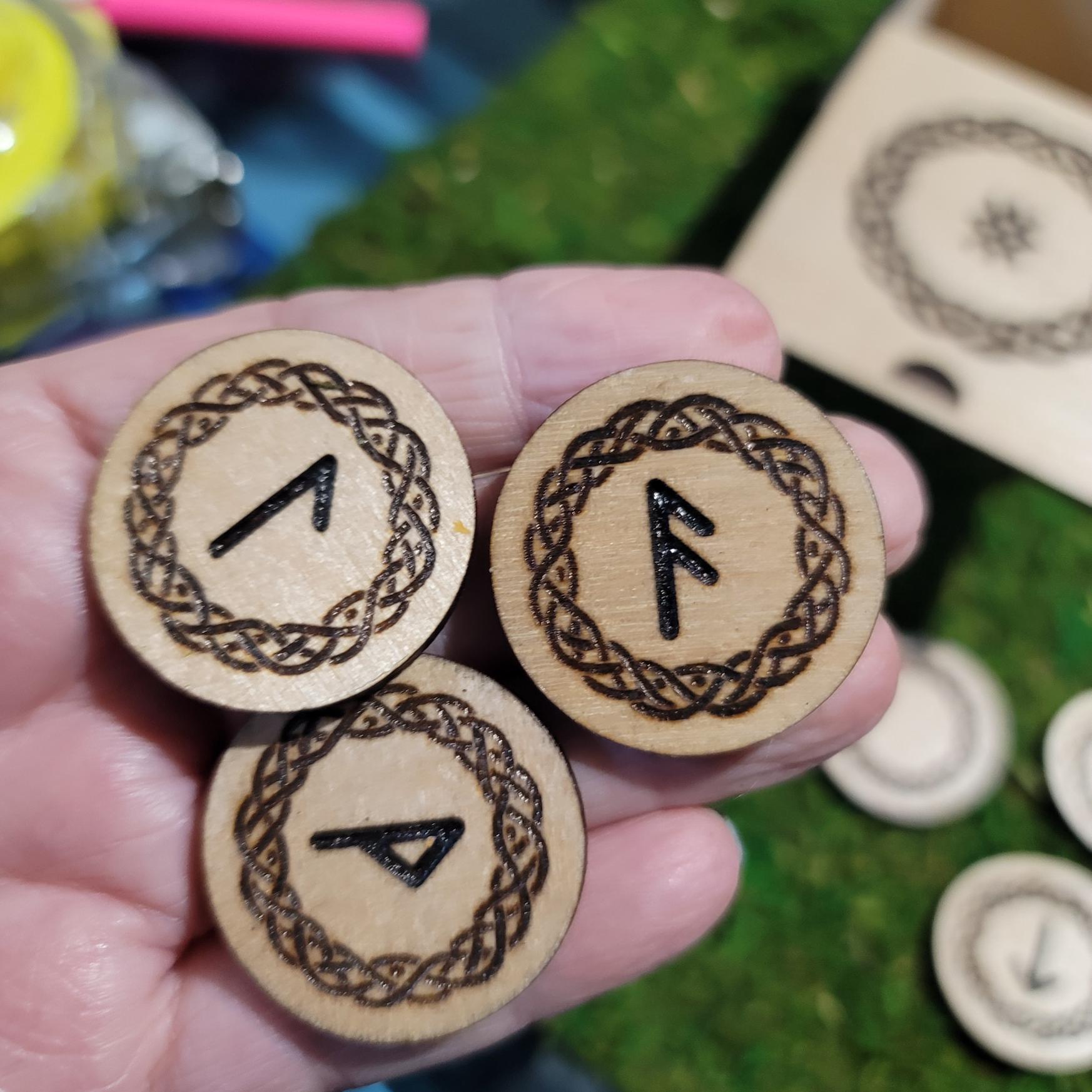 Each rune is individually cut and engraved with care. I personally finish and box every set, so you receive a truly handcrafted piece made with intention and pride.