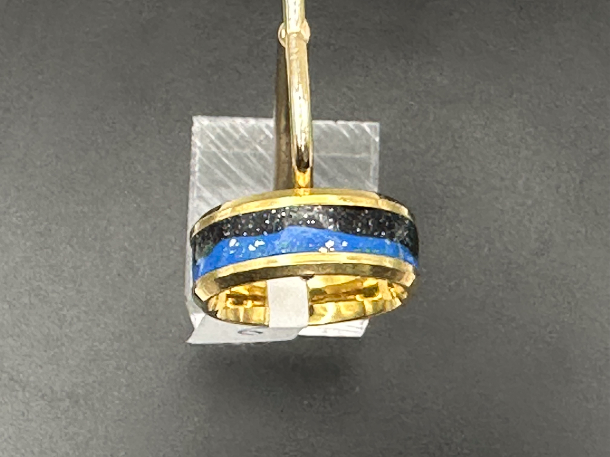 Electric Nightfall Ring – Black & Blue Inlay with Gold Accents - Size 6