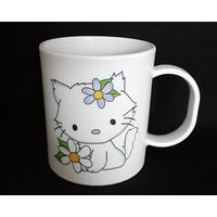 Make meals more fun with this elephant mug. This 11 oz. white plastic mug is top rack dishwasher safe, microwave safe. Design is printed onto mug, not a decal or sticker. This mug meets all safety standards for plastic drinkware and it is BPA free. Made by Susie Dee's with licensed artwork.