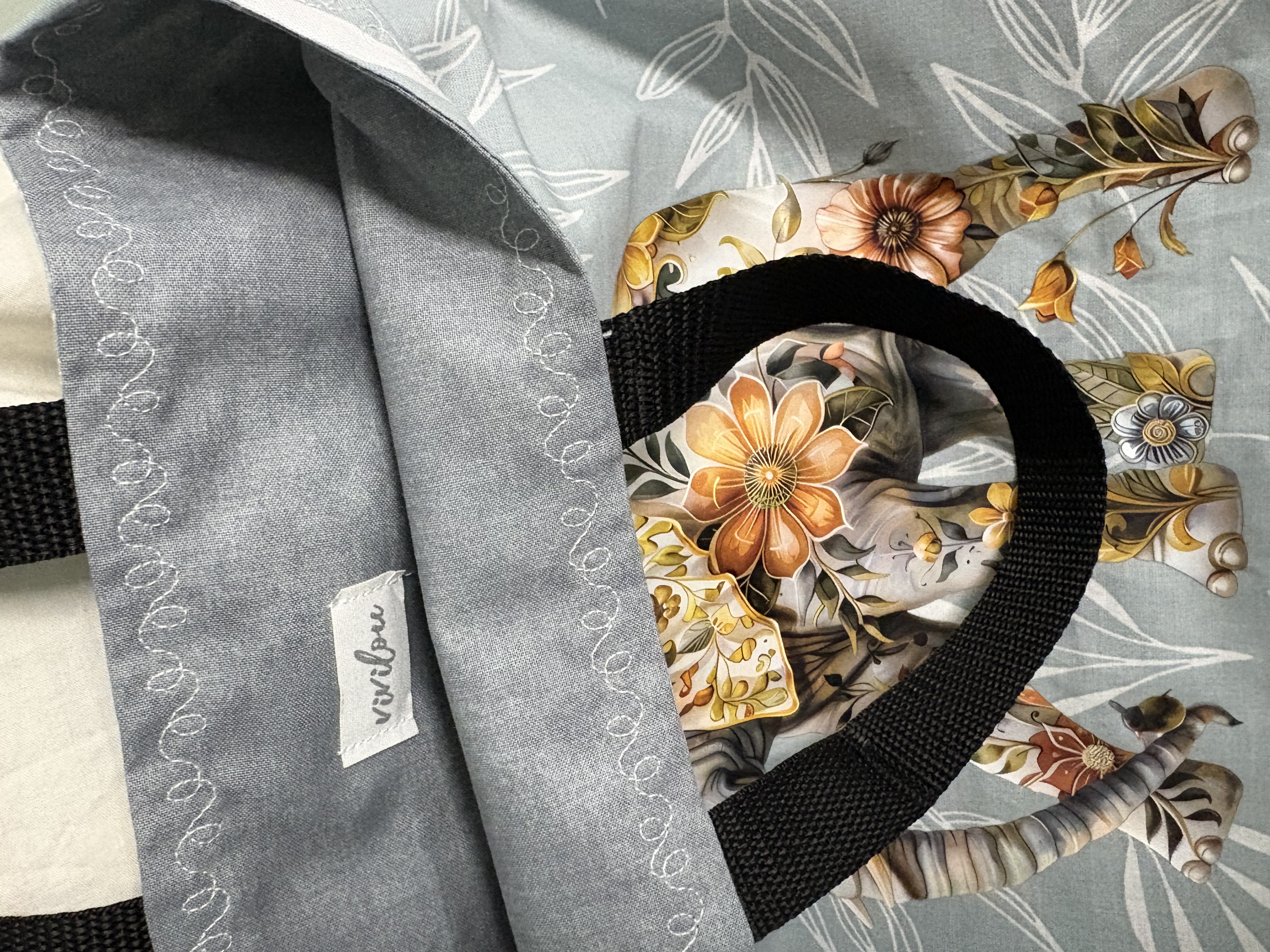These tote bags are a great size 13” x 15” not counting 10” handle.. many great uses. All have a matching lining to coordinate with prints