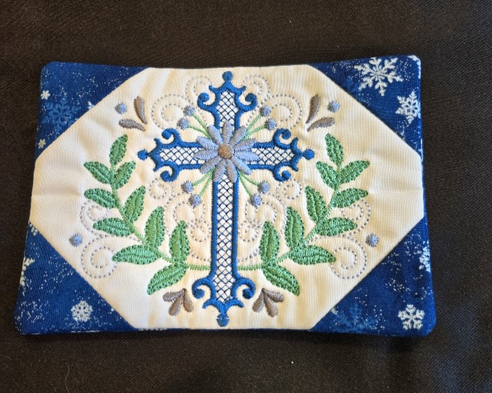 This handmade item combines both fabric and thread to create unique embroidered and appliqued design Mug Rugs for hot or cold cups, small bowls, and glassware to protect leaving marks on tables or any other surface.