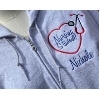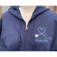 Embroidered Caduceus RN hoodie. Perfect gift for anyone in the medical field. You can personalize by adding their name. If you prefer another design something related closer to their field, please send me a message and I can help create something custom for you.