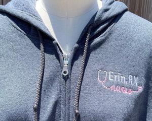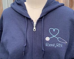 Embroidered Caduceus RN hoodie. Perfect gift for anyone in the medical field. You can personalize by adding their name. If you prefer another design something related closer to their field, please send me a message and I can help create something custom for you.