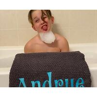 100% ring spun cotton hand towel and high quality embroidery thread embroidered on an Innov-is XE1 embroidery machine.