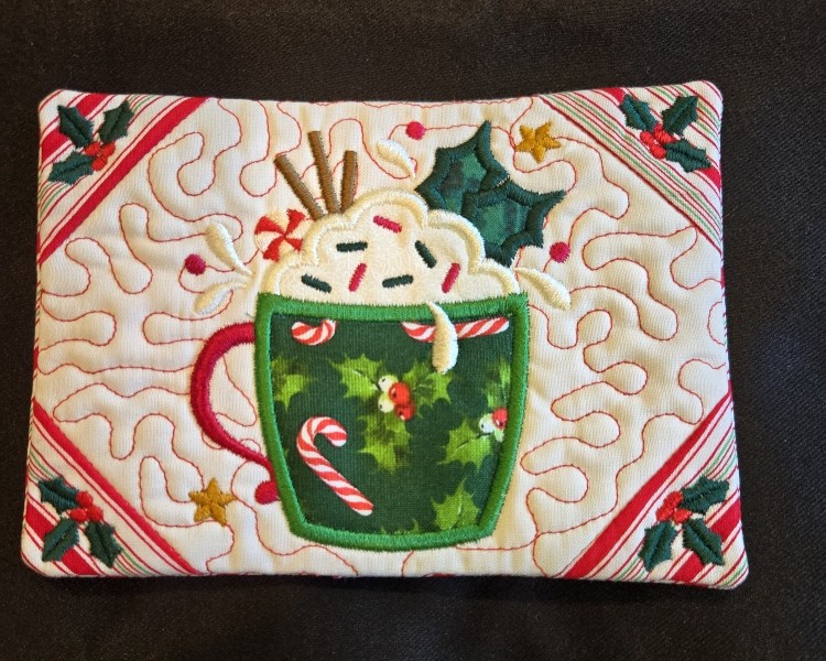 This handmade item combines both fabric and thread to create unique embroidered and appliqued design Mug Rugs for hot or cold cups, small bowls, and glassware to protect leaving marks on tables or any other surface.