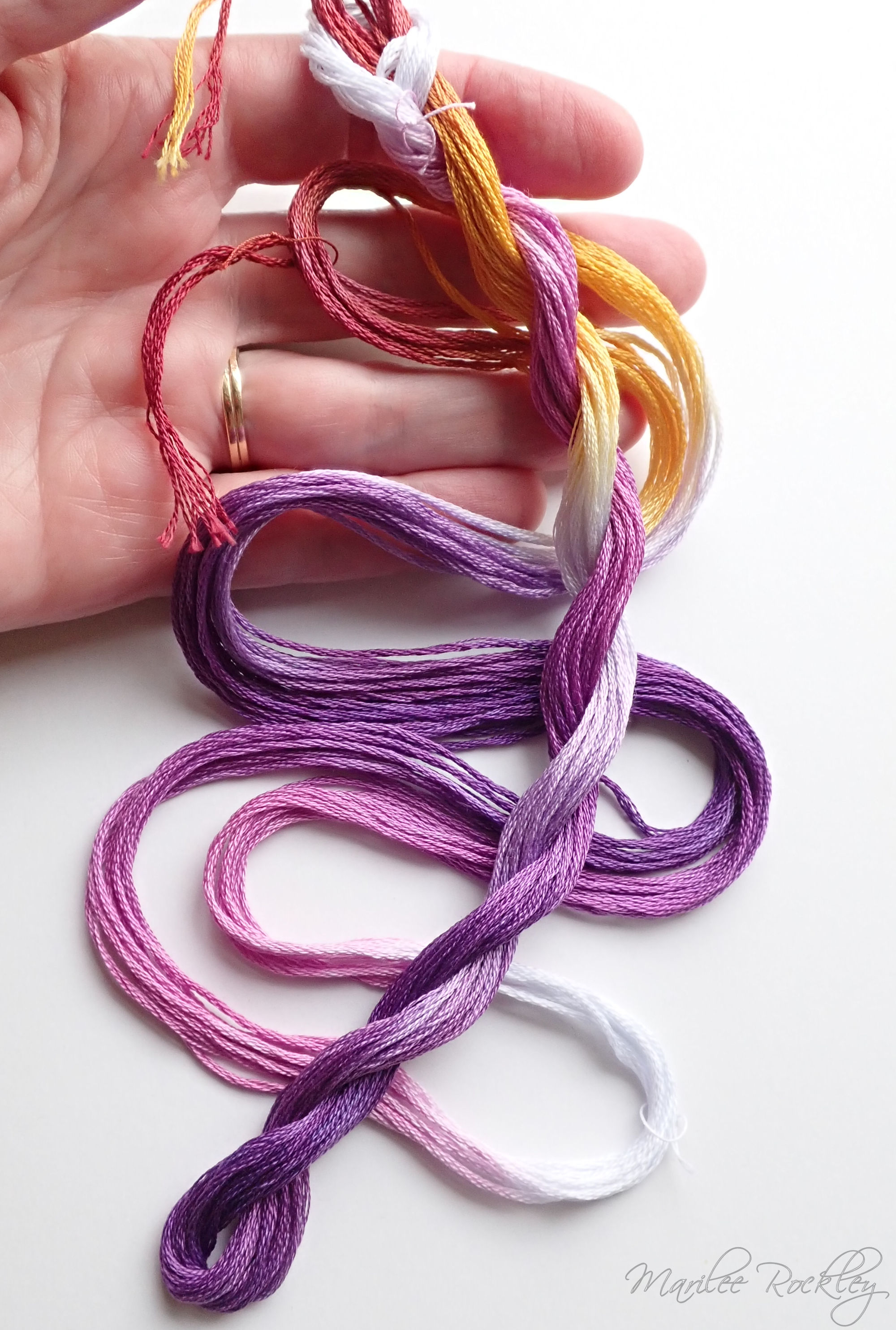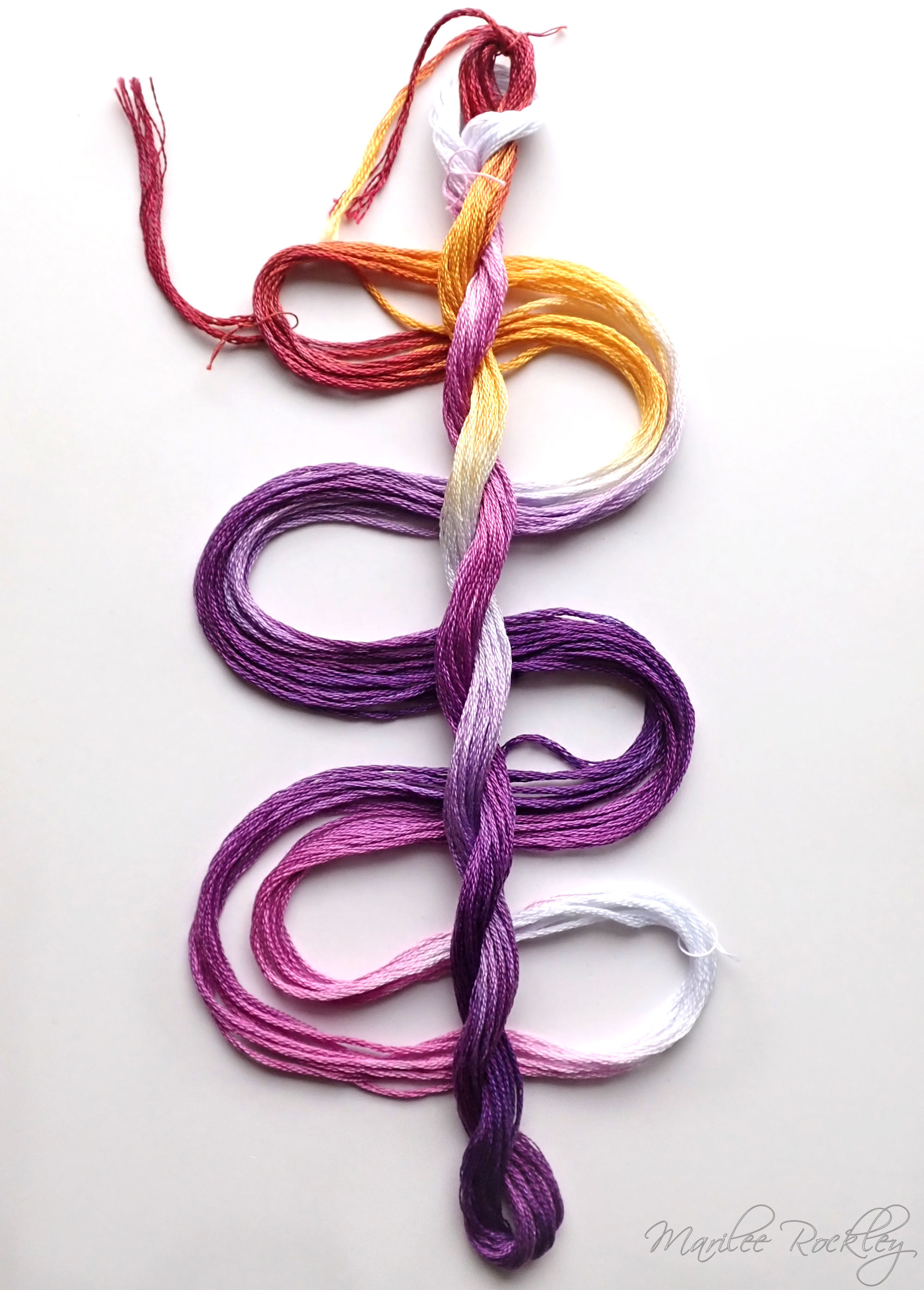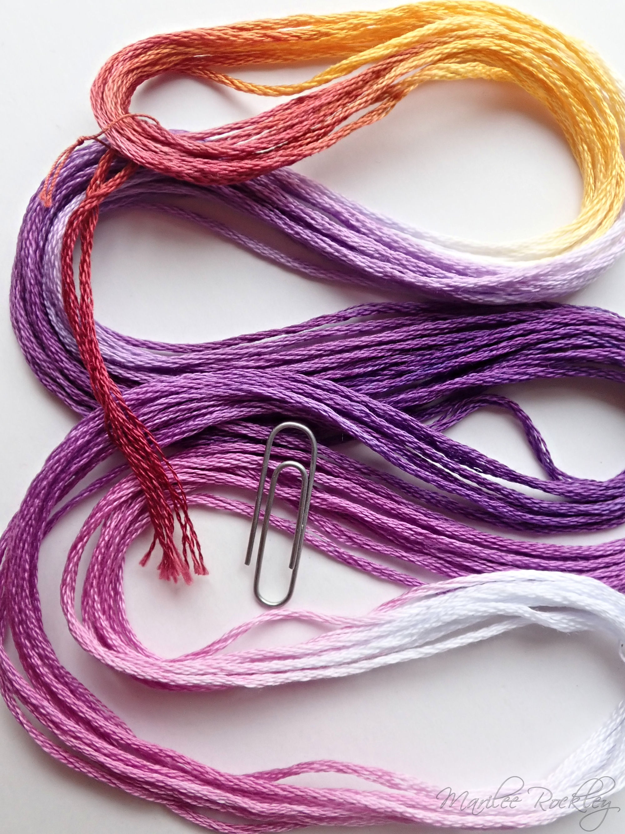 This is an 8 yard skein of divisible 6 strand cotton embroidery floss, which I hand painted with Procion MX dye.